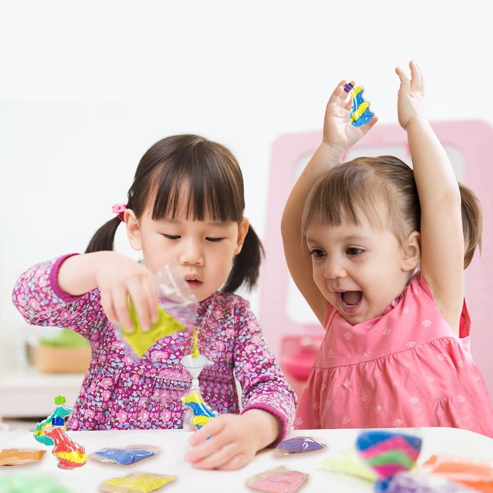 ArtCreativity Colored Sand Art Kits for Kids 40-Pack, Play Sand Set, 10 Assorted Colors, 8 oz. Each, 24 Sand Art Bottle Necklaces, and 6 Funnels Bulk Sand Art Project, Kids Party Crafts for Boys Girls