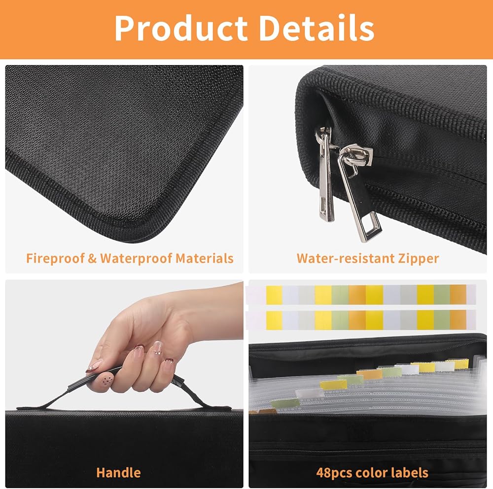 Suitable for All Occasions -- Double zipper design is easy to open and close, and you don't have to worry about losing any important documents. Fireproof folder storage contains colorful labels to make sorting files effortless. File organizer folders is suitable for business, travel, office, school, home and many more occasions where you can be 100% sure that your important documents are in a safe place.