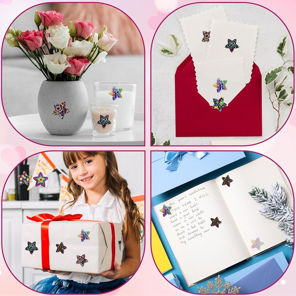 2. As the star stickers for kids' reward, you can stick shiny star stickers on their faces, behavior charts, artwork, etc. Kids will love the colorful star stickers! Also, you can stick star-shaped stickers on your gift boxes, gift bags, envelopes, etc, to make your gift more elegant and unique.