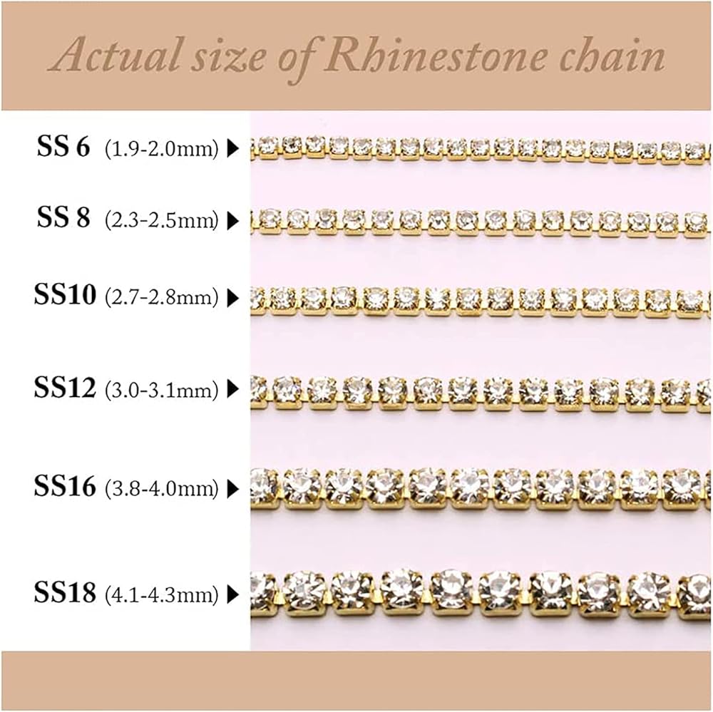 Feature: 1. Widely used, suitable for decorative leather bracelets, clothes, shoes, etc. 2. DIY decorations, which can be used for DIY to make mobile phone cases, etc. can fully stimulate your creativity 3. The rhinestones are bright in color, and there are many colors to choose from 4. All rhinestones are made of AAA quality, which is very shiny, and the welding effect of all trims is very good 5. High-quality materials, strong and durable, reusable and have a long service life Specification: Chain Length: Approx 5yards/4.57m/180inch Rhinestone size: Approx. 2.5MM/0.1inch Materials: Metal + Rhinestone Color: Gold cup with crystal clear rhinestones Package Included: 1 x roll Rhinestone Chain Note: 1. Please allow 1-3cm error due to manual measurement. Thanks for your understanding. 2. Monitors are not calibrated same, item color displayed in photos may be showing slightly different from the real object. Please take the real one as standard.