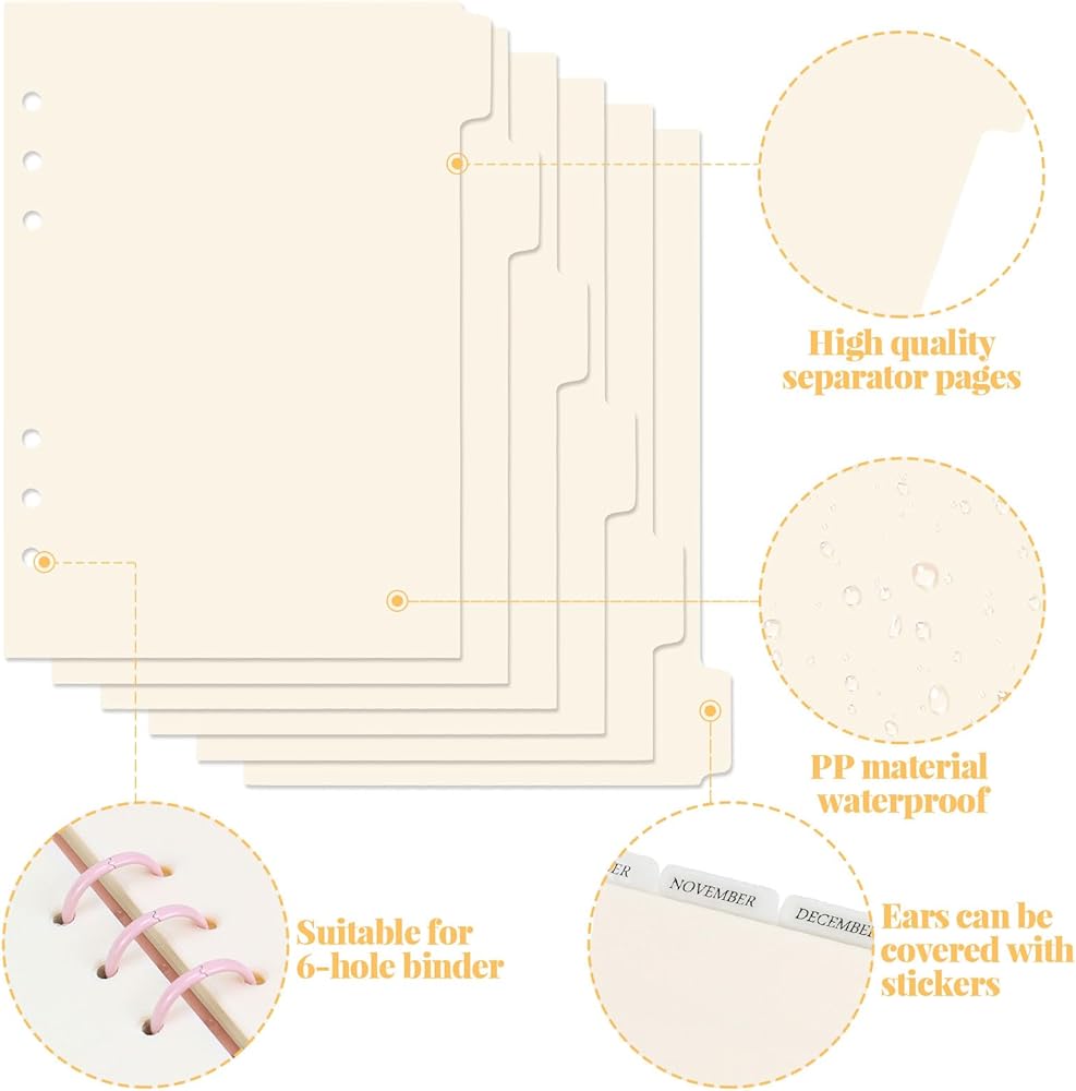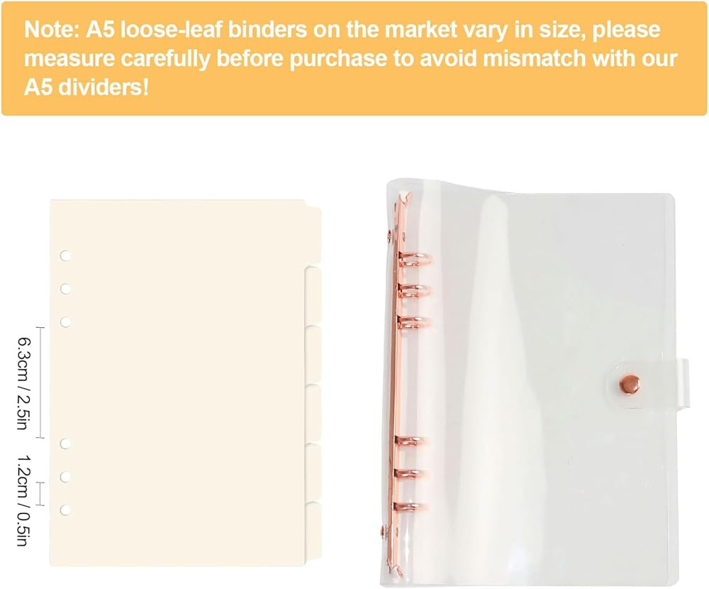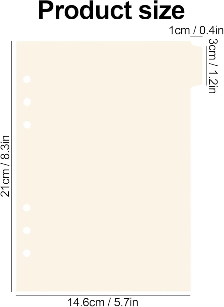 Size: size of the tab divider is 5.8"×8.3", 6 holes index page tab cards for a5 loose leaf notebook.