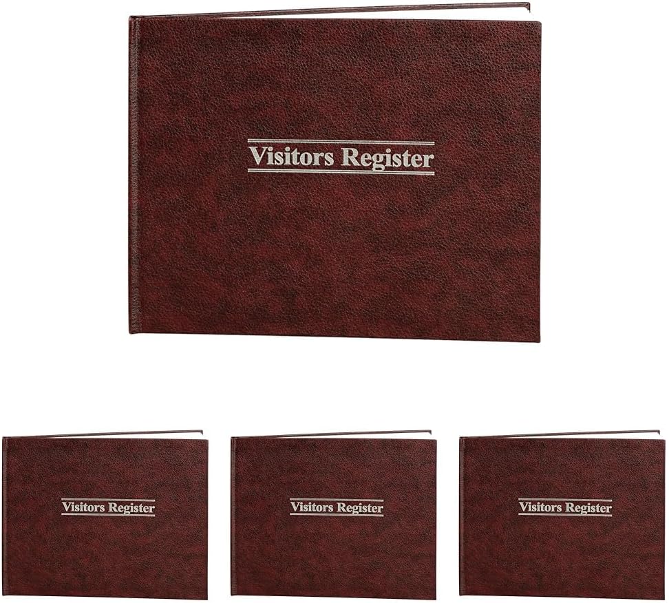 Visitor's register books have an upscale look that is great for sign-in anywhere. 112 pages printed in black ink with space for 1,500 entries with 5 columns to track attendee's date, name, address, time and remarks. Dense cover material with 2-tone red leather binding is durable and professional.