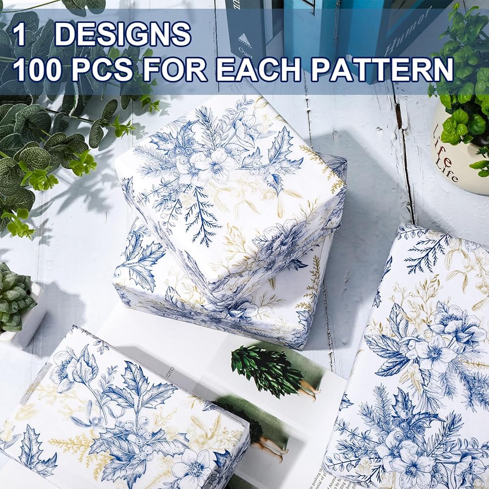 THE PACKAGE INCLUDES: 100 sheets tissue paper are included in the set, sufficient to meet your wrapping needs for gift wrapping and decoration. With delicate and elegant patterns, they are great decorative paper for wrapping and crafts making.