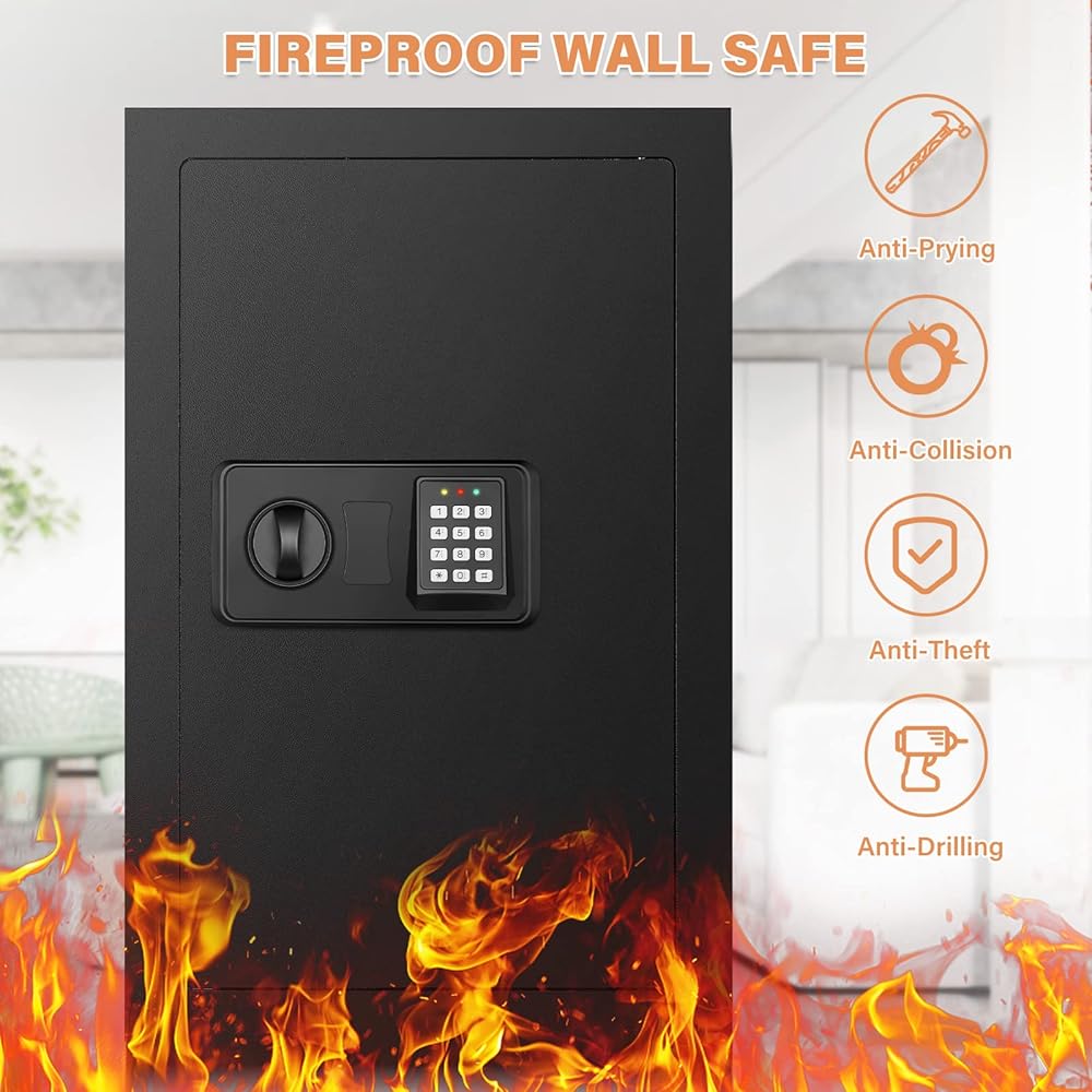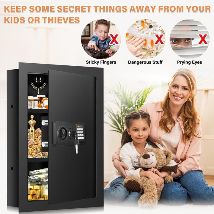 17.72" Tall Wall Safes Between the Studs with Hidden Bottom Compartment, Heavy Duty Hidden Safe with Combination Lock, Compact in Wall Safe for Documents Money Valuables