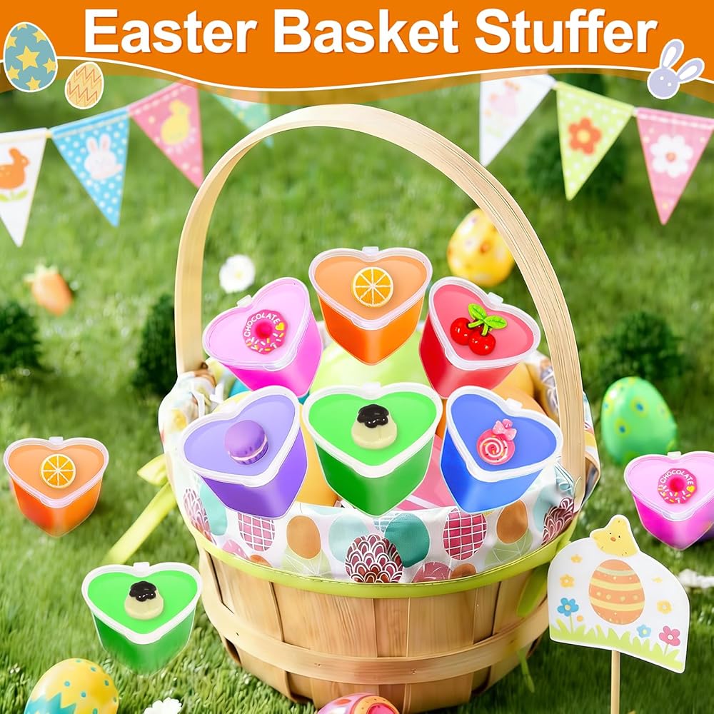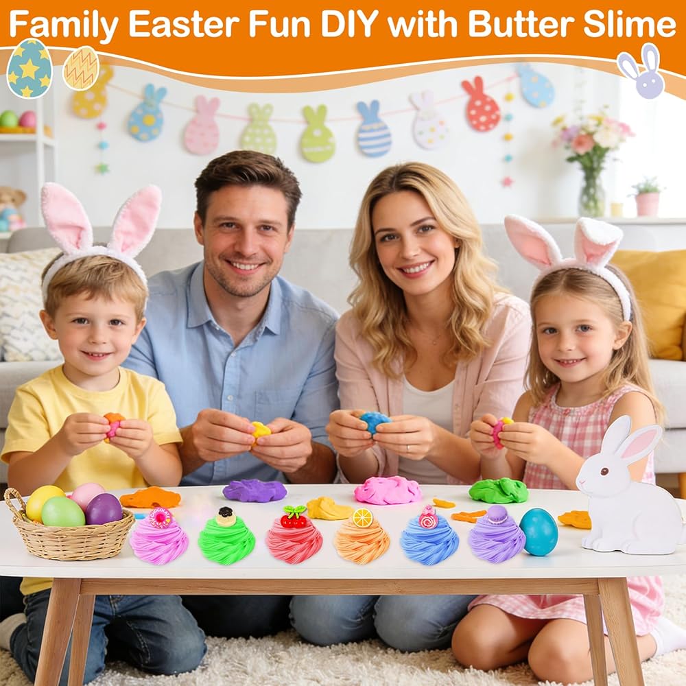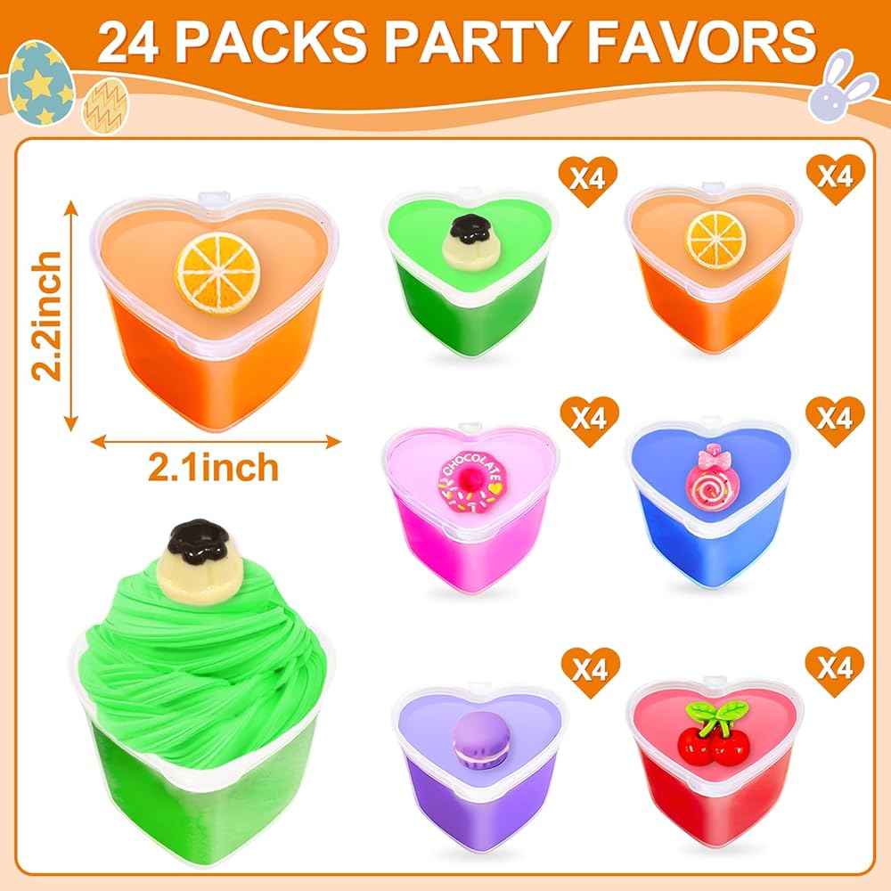 24 Pack Easter Basket Stuffers, Easter Gifts for Kids Butter Slime with Charms No-Sticky Stress Relief Fidget Toys for Classroom Exchange Gift Party Favor for Girls Easter Basket Stuffer Fillers