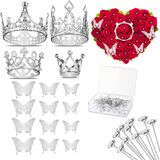 Silver Crowns for Flower Bouquets and Flower Bouquet Accessories, Including 4 Pieces Gold Crowns for Flower Bouquets, 12 Pieces Butterfly Decorations and 50 Pieces Diamond Pins for Bouquets