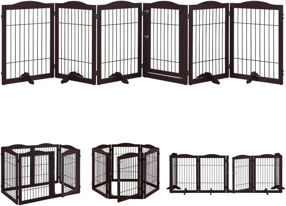 beeNbkks Extra Wide Pet Gate, 6 Panels Freestanding Dog Gate with Walk Through Door and 5 Support Feet, Foldable Pet Barrier Fence for Stairs Doorways Fireplace, Indoor Exercise Playpen for Dogs Cats