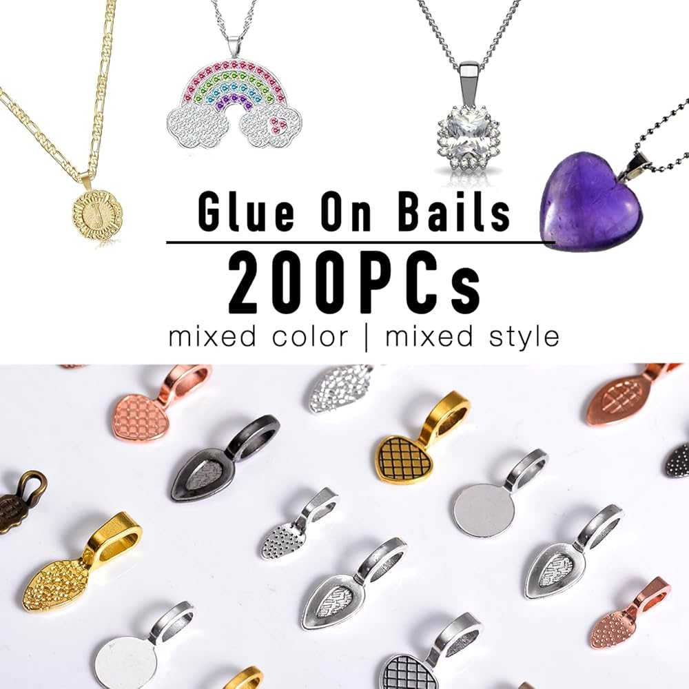 200PCs Glue on Bails for Jewelry Making, Necklace Pendant Pinch Finding & Supplies for Crafts Making (Mixed Color)