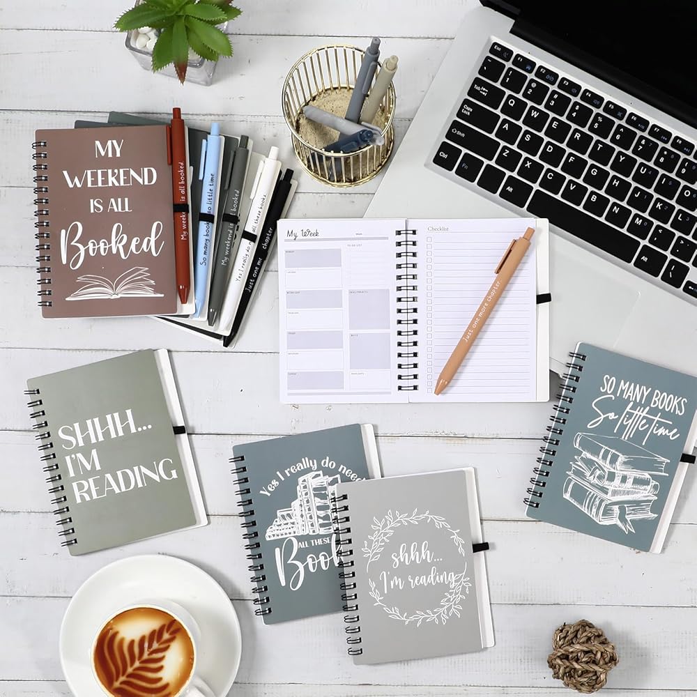 Each notebook features a fun and practical design, showcasing 10 distinct patterns that catch the humor and beauty of a book lover's journey. Whether it's witty remarks or inspiring quotes about reading, these designs bring a smile to the face of anyone who receives them.