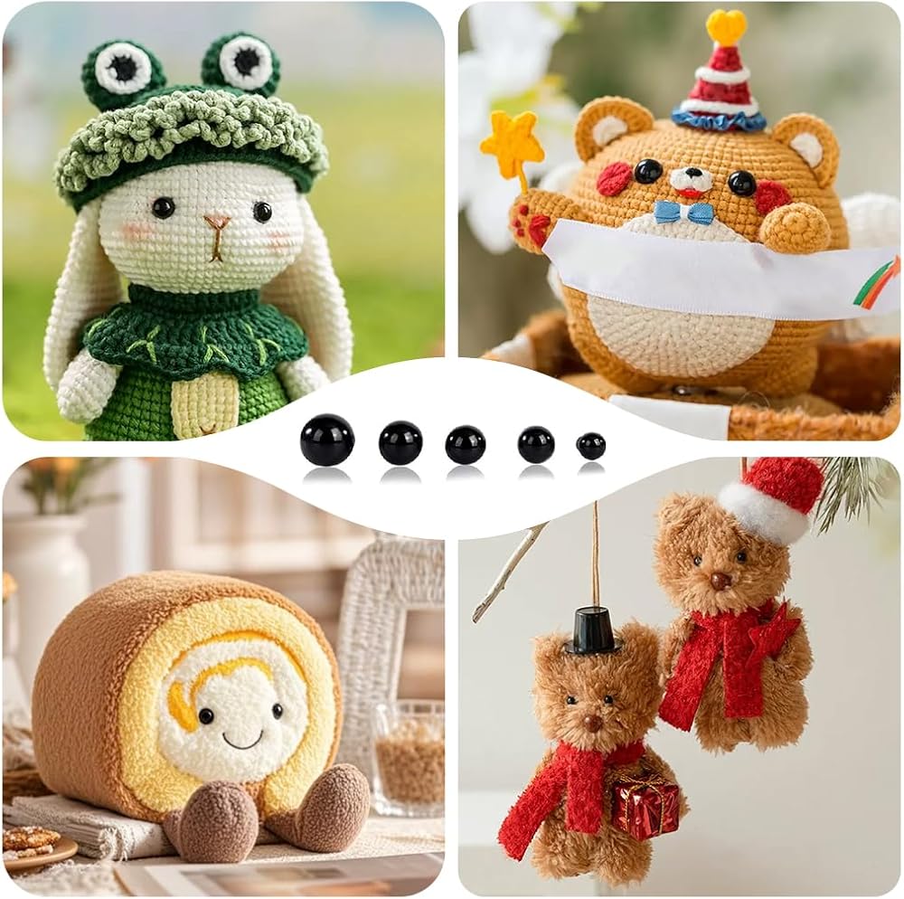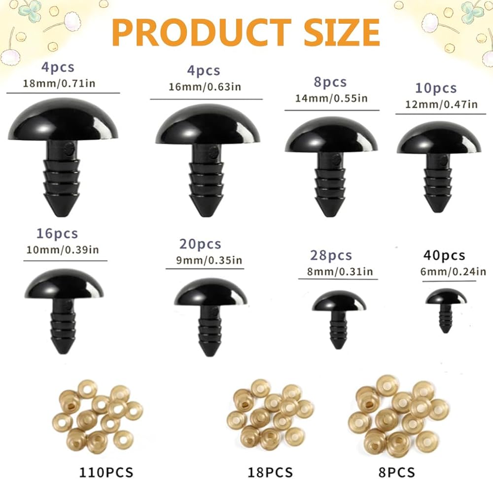 Item contains: 2mm(100 pcs),3mm(100 pcs),4mm(100 pcs),5mm(100 pcs)black glass eyes + Transparent plastic storage box(4 pcs)