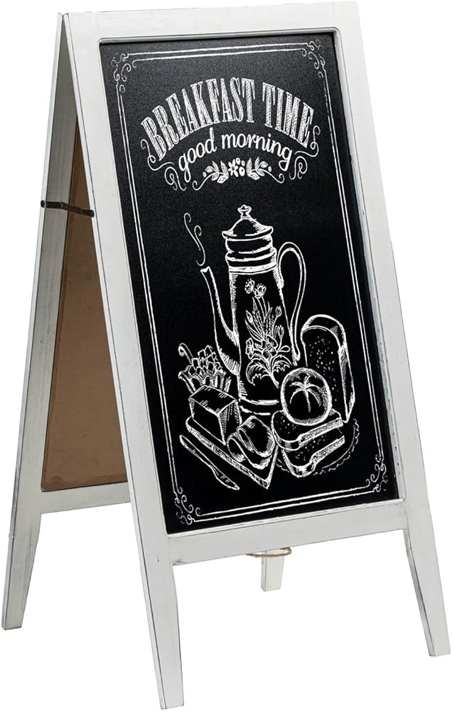 Freestanding Country Rustic Style Message Memo Chalkboard Sign/Sidewalk A-Frame Chalk Sandwich Board (Vintage White)