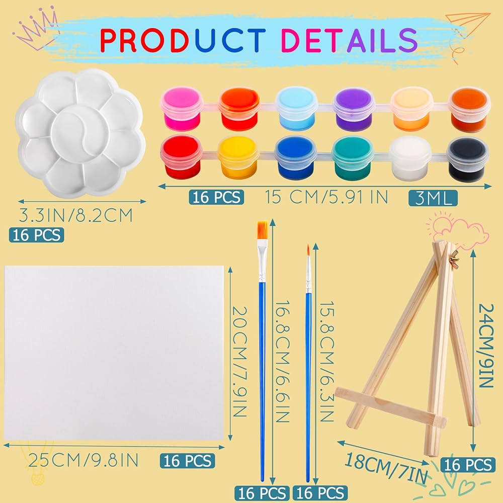 Multiple Occasions: Our mini canvas and easel set with paint can be used in many occasions, such as painting parties, birthday parties, painting classes, family painting days, and can also be used as class gifts