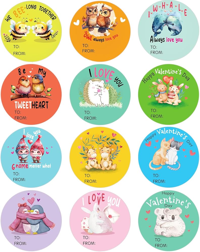 SICOHOME Happy Valentines Day Stickers - 36pcs 1.5in Valentines Stickers for Kids Adults Valentine to from Label Stickers Envelope Seal Stickers Party Favors Gift Labels - Animal