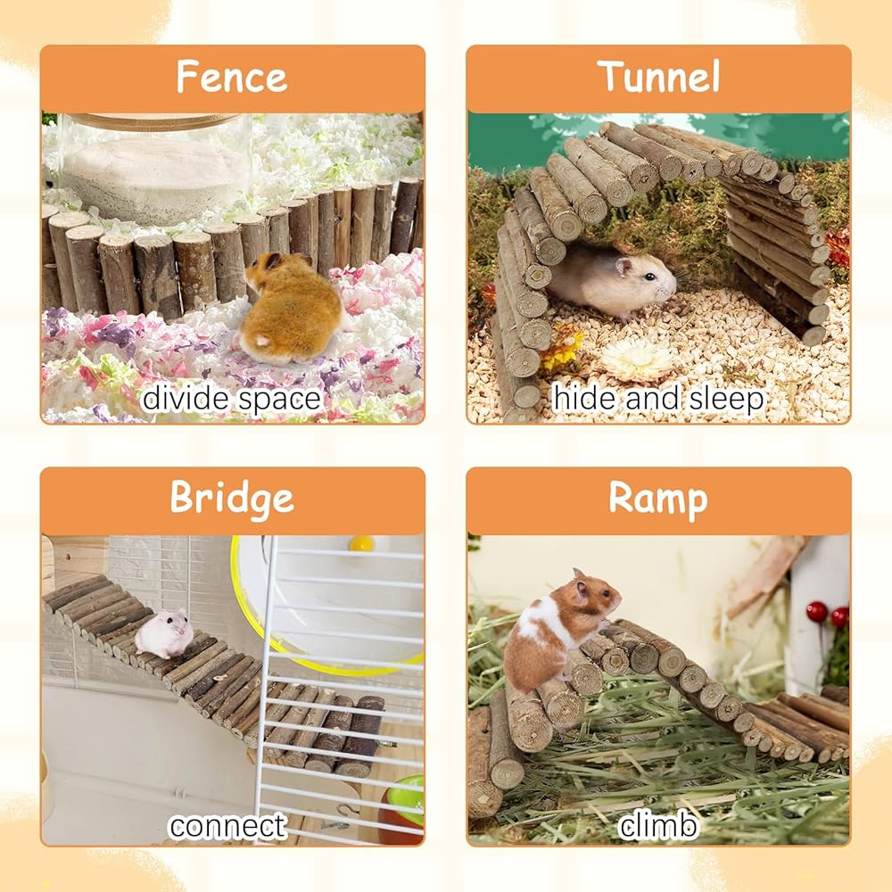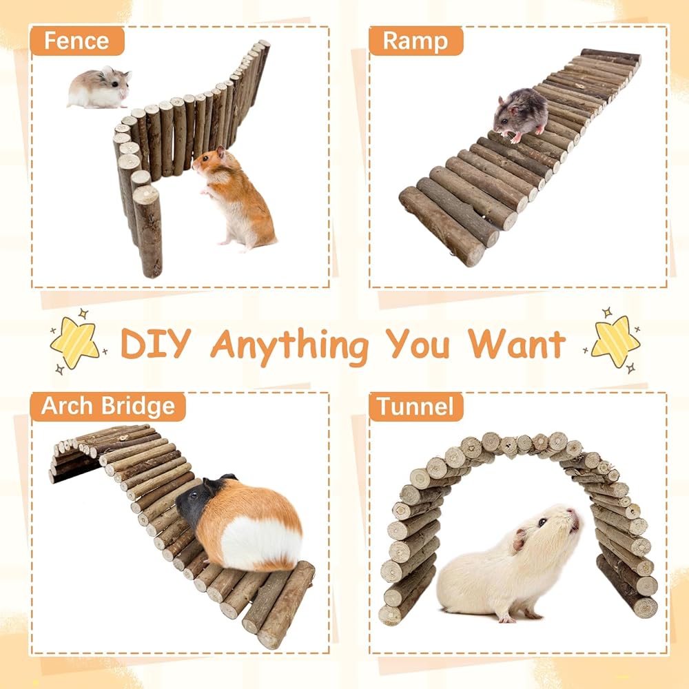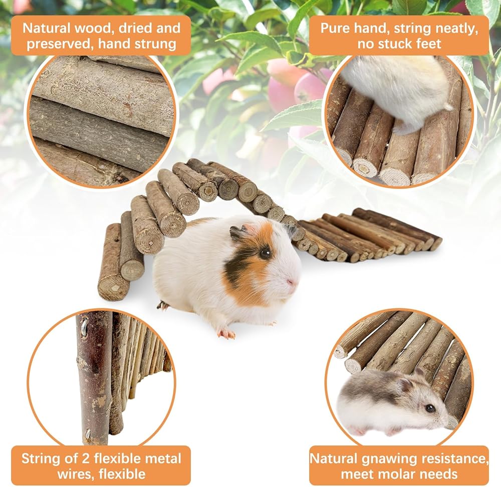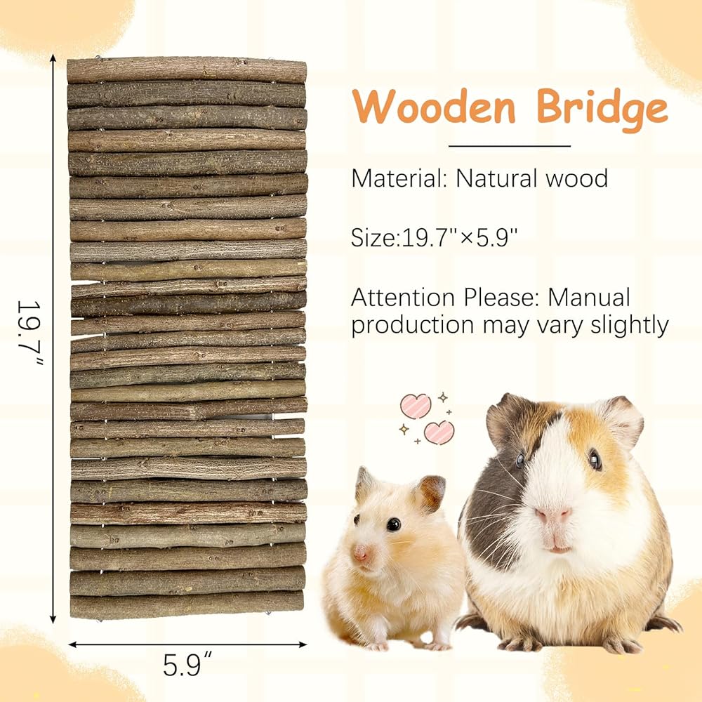 Package included 1 pcs Wooden Bridge. Size:15.7 in X 25.1 in (L x W). Pure hand-made, easy to save, safe and assured.Great for playing and nibbling,reusable, sturdy, practical, can be used for a long time.Note:Dust properly before use