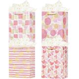 【4Pcs Small Gift Bags with Handles】-Small size gift bags with pink heart design, which are suit for any occasion.