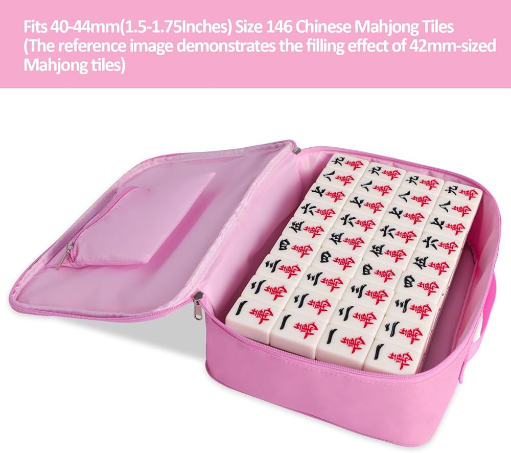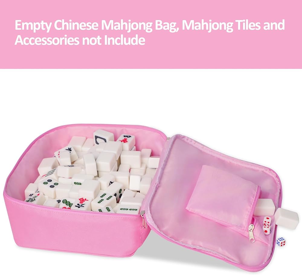 Empty Chinese Mahjong Bag, Suitable for 40-44mm(1.5-1.75Inches) size 146 Chinese mahjong tiles, Pink Mahjong Tiles Storage Bag (Case Only, Mahjong Tiles not Include)