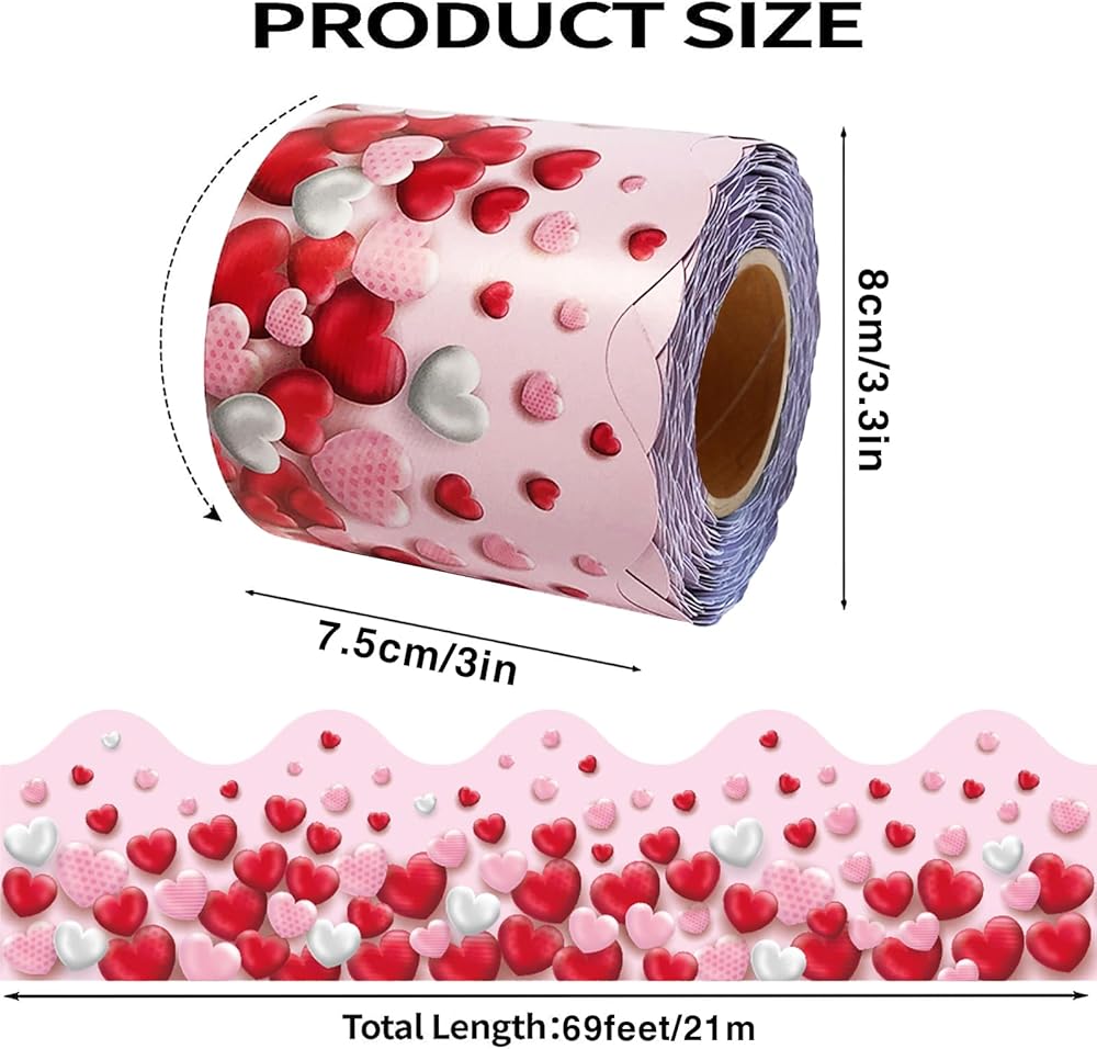 You'll receive: 1 roll of Valentine's Day bulletin board border, measuring 69 feet x 3 inches.Enough quantity can meet your needs for daily use and replacement, you can also share with your friends and parents at the same time