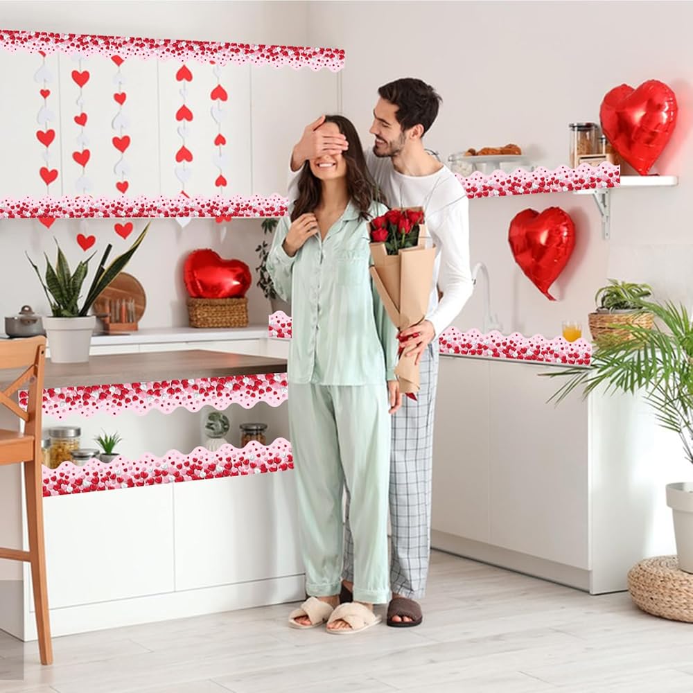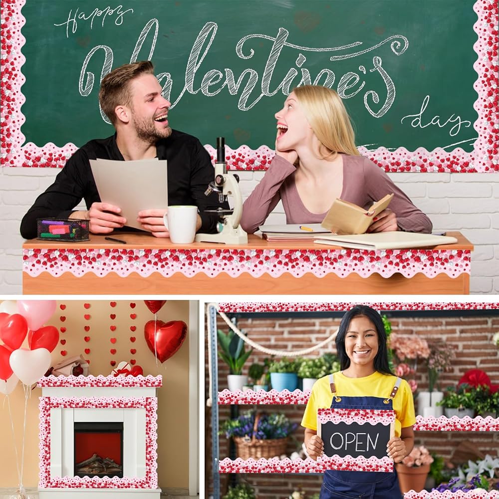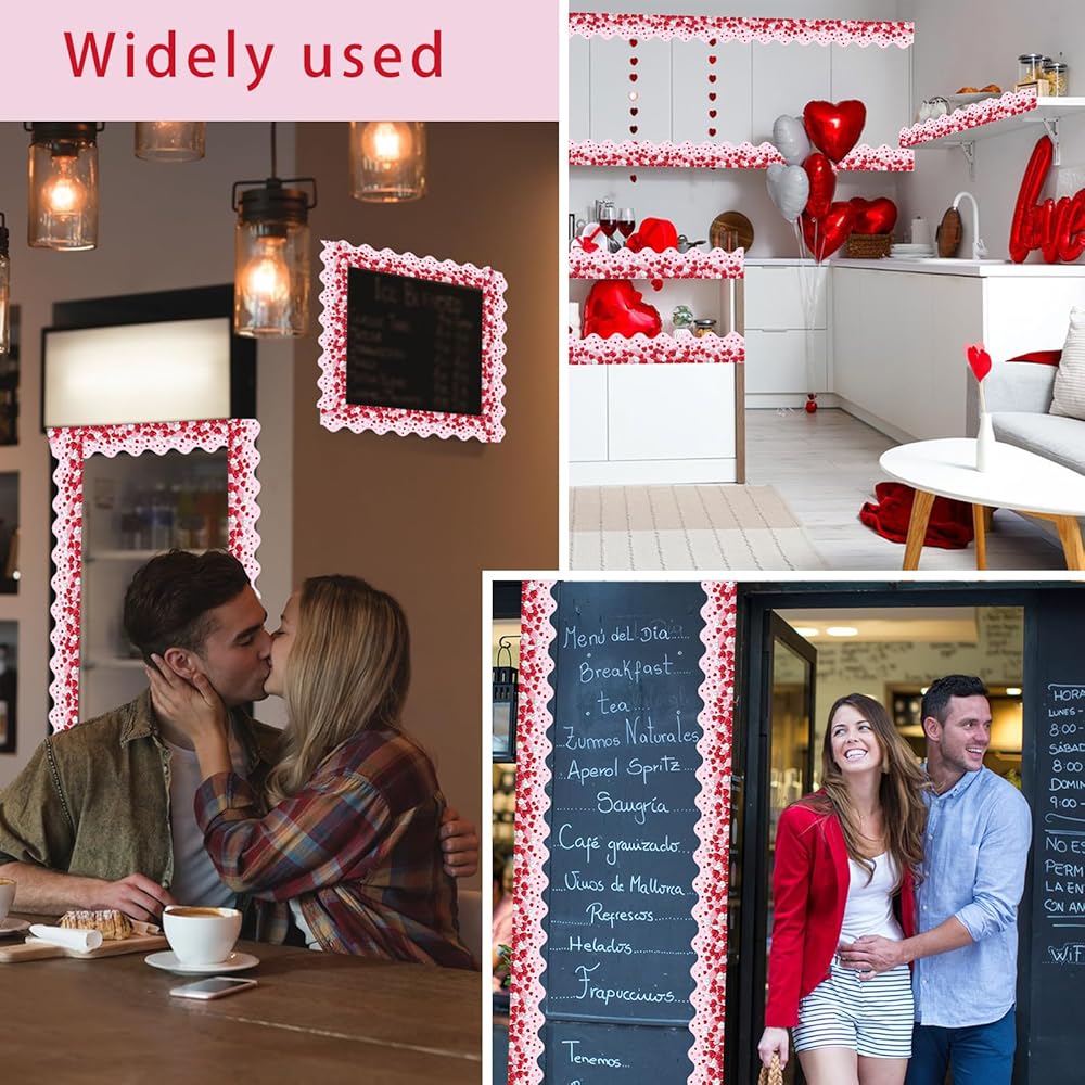 69 Ft Valentine's Day Bulletin Board Border Heart Trim Border Sweet Valentine Wall Decals for Wedding Anniversary Party Wedding Anniversary Party Classroom Chalkboard Office Decor Supplies