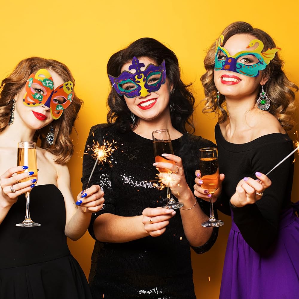 You can draw your favorite patterns on the Mardi Gras masks to decorate, and you can also match beautiful diamonds and feathers as adornments.