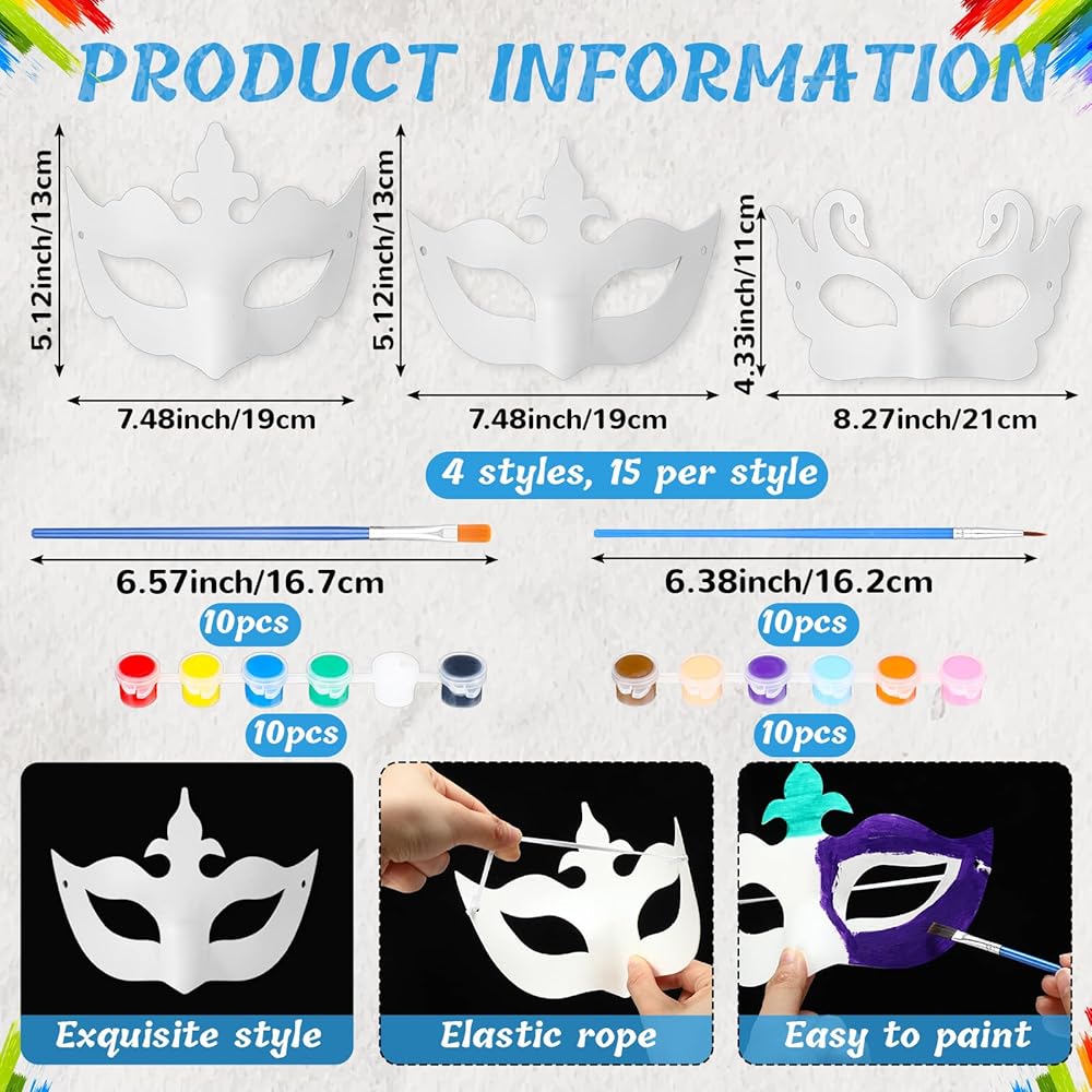 60 x White blank paper mache masks