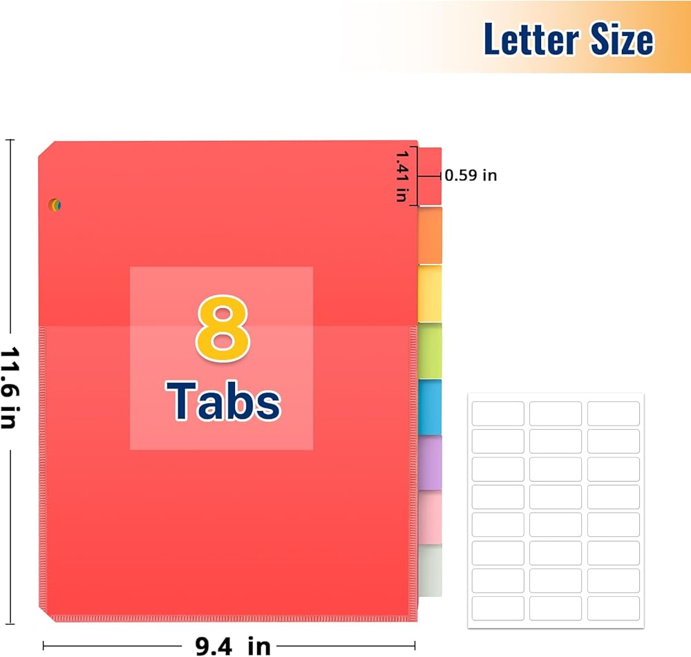 Package Includes: A total of 16 plastic dividers for 3 ring binder with Pockets designed for efficient document organization with 24 pieces of self-adhesive custom labels. 8 colors available, you can easily color-code your papers!