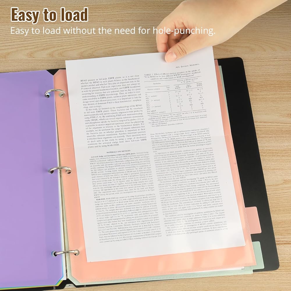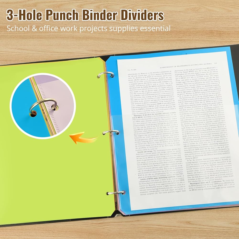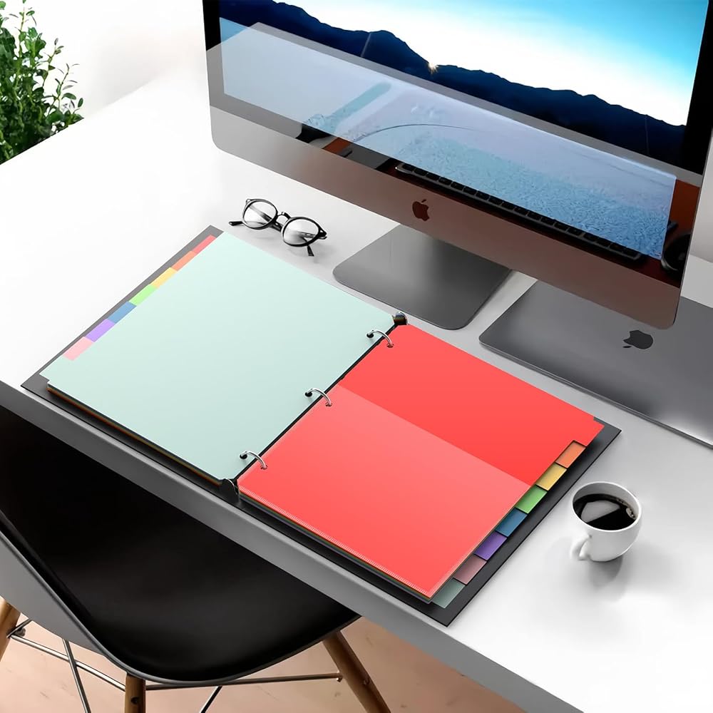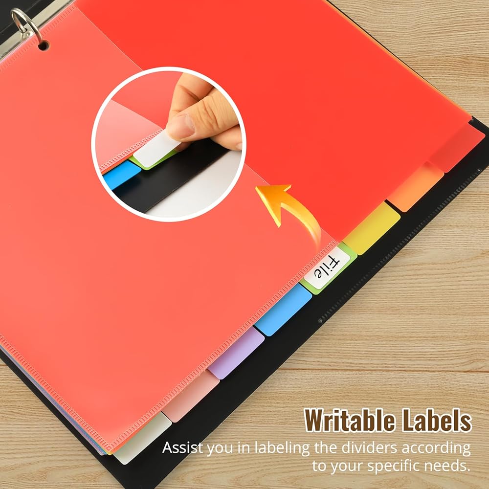 Superior Quality Material: Our 3 ring binder dividers with tabs are made of high-quality PP material, smooth and soft surface.designed to protect your documents from wear and tear, spills, and other types of damage. Additionally, they are easy to clean, allowing you to maintain a fresh appearance in seconds effortless.