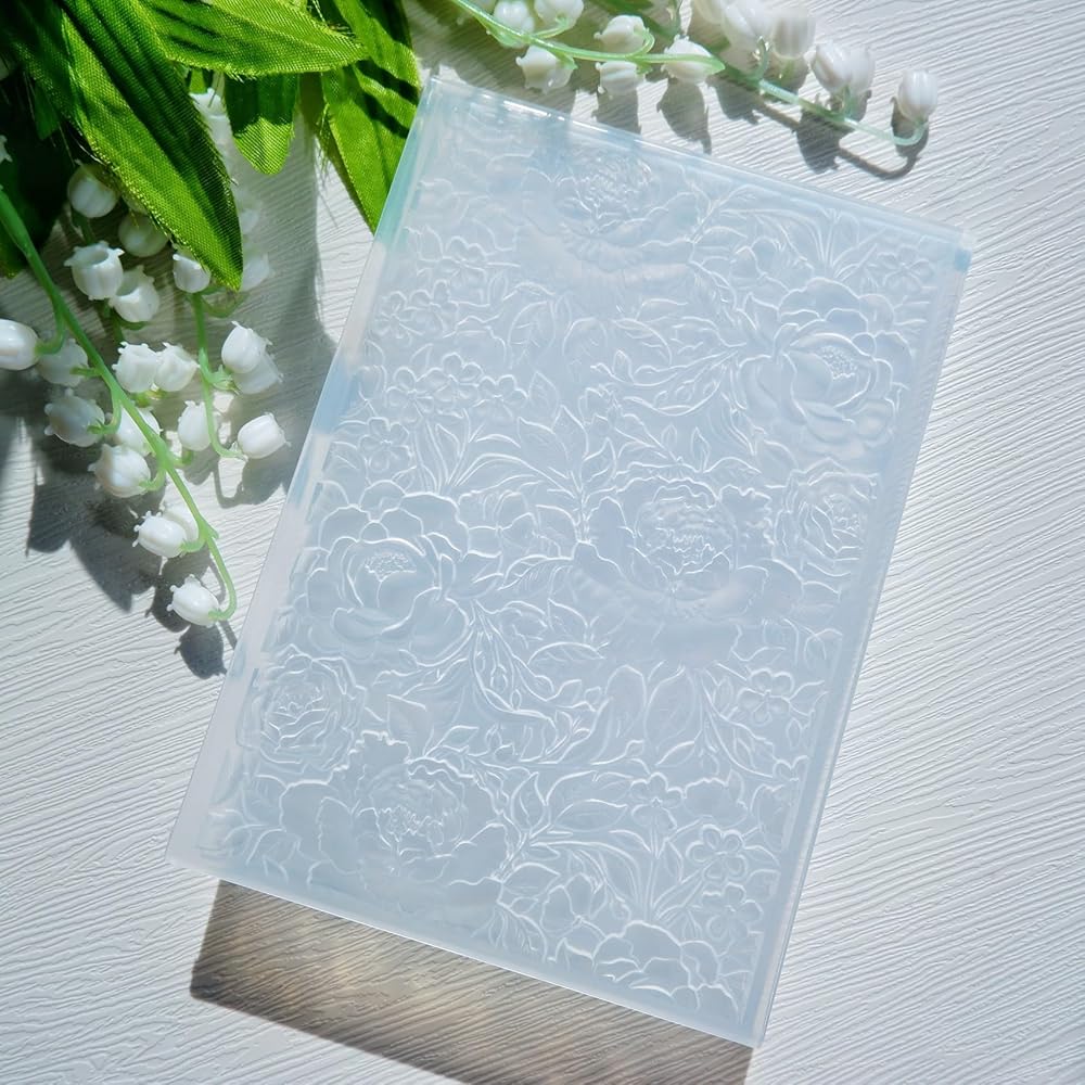 3D Peony Flowers Texture: Beautiful and delicate 3-D Flowers and buds textured embossing folder creates a detailed effect,a crisp impression. This Flowers pattern embossing template is ideal to make a greeting cards or other handmade paper crafts projects.