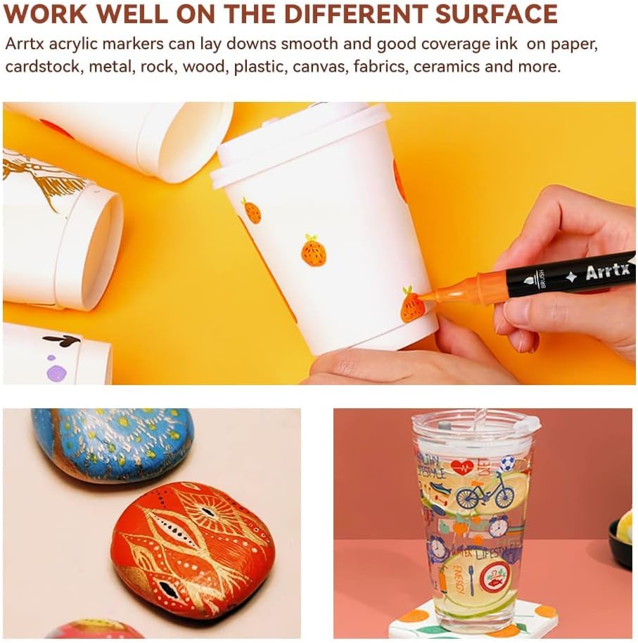 Work well on Multi Surfaces - Arrtx drawing markers set provides water-based smooth ink for a variety of surfaces, including rock painting, metal, paper, wood, plastic, canvas, fabrics, ceramics, and more. Warmly tips: If you need to put your artwork outdoors or in water, it is recommended to spray sealant after drying, which avoids being reactivated by water and smears.