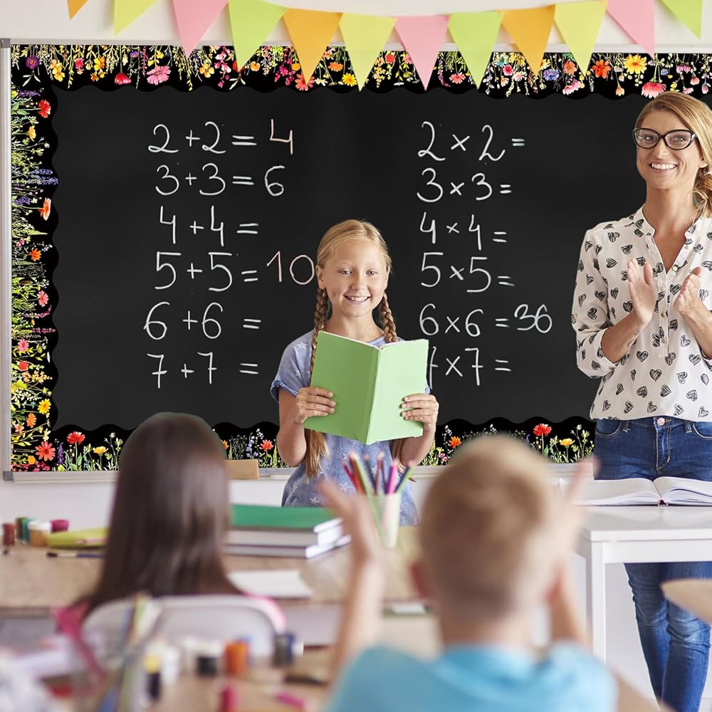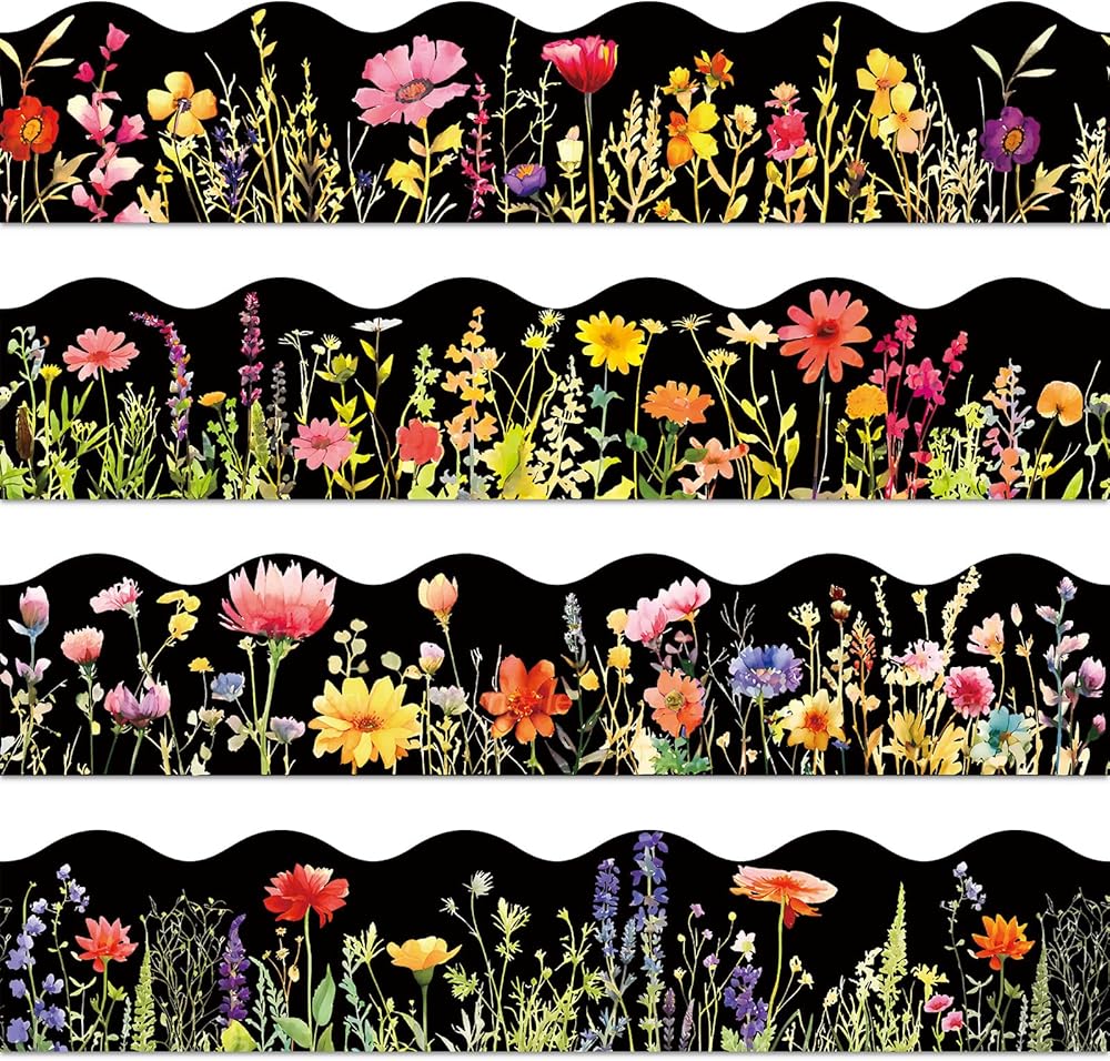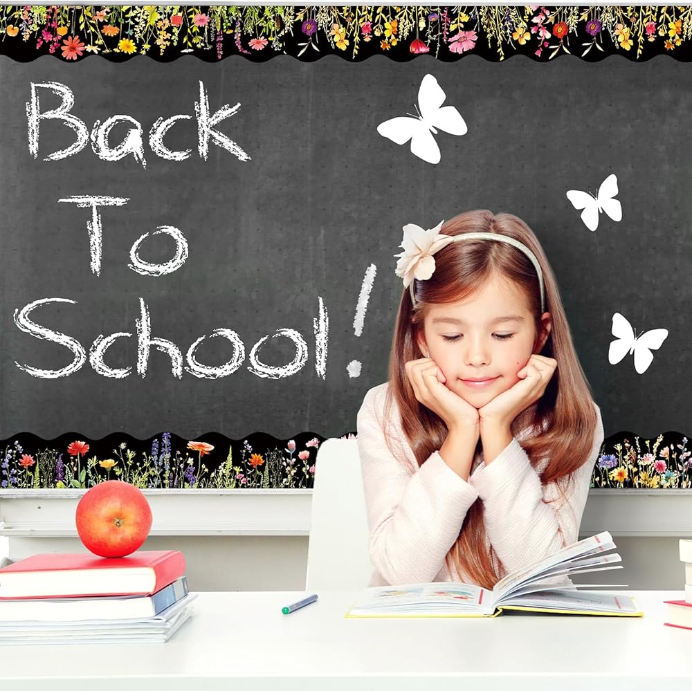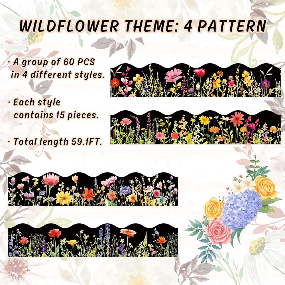 60 Pcs spring theme bulletin board borders adopt cartoon design with various flowers, bees and butterflies, vivid and full of vitality.