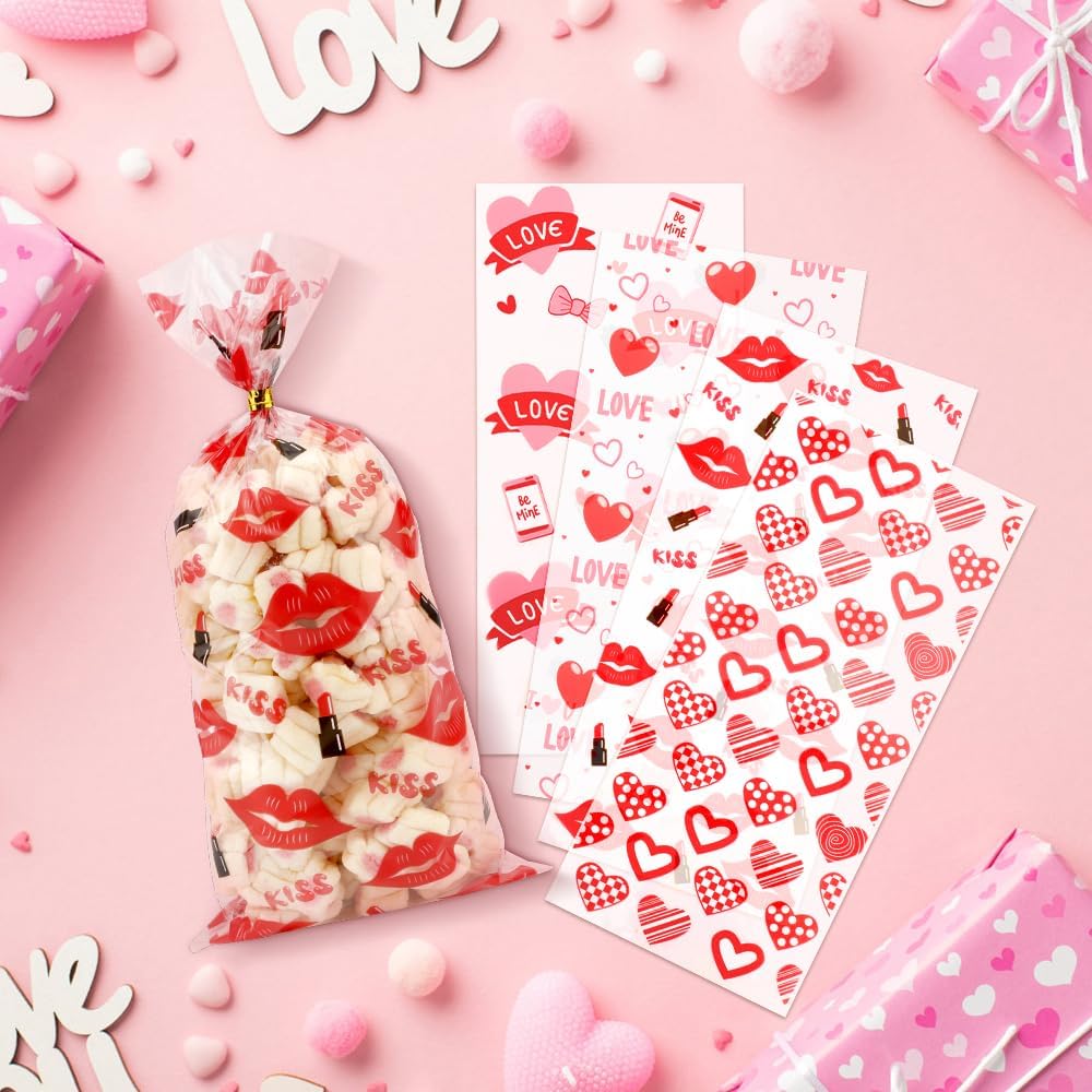 Unique Valentine Gift Bags: Our Valentine's day candy bags are designed with classic Valentines elements including different romantic beautiful heart, kiss, lipstick, love words and more. Our Valentine cookie bags which have vivid appearance and sweet red patterns can appeal to children attention and add more atmosphere for Valentines, Valentines party decorations, wedding etc