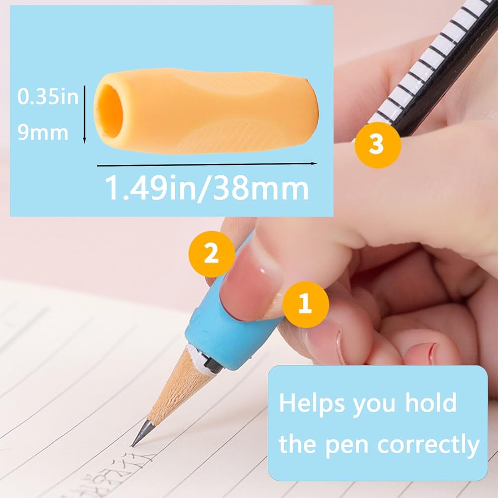 • Ergonomic Design: The pencil grips feature an ergonomic groove design that puts your fingers in the correct pen grasping 0posture in one second for children and adults.
