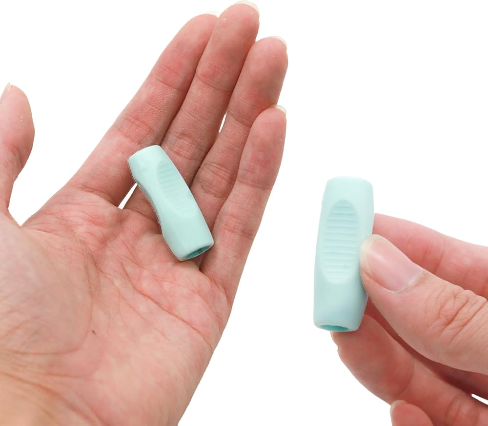 • Design: Training pencil silicone holders have two holes that portable grips can fix the thumb and index finger, finger grips for pencils allowing you to hold pencil the right way preventing skin irritation and blisters.