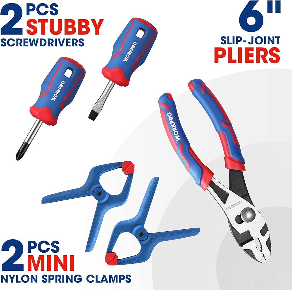 Real tool kit for small hands, our stubby tools are kids friendly and fit for small hands, They are carefully chosen for young beginners to hammer, cut, screwdrive, clamp, measure, and mark-up