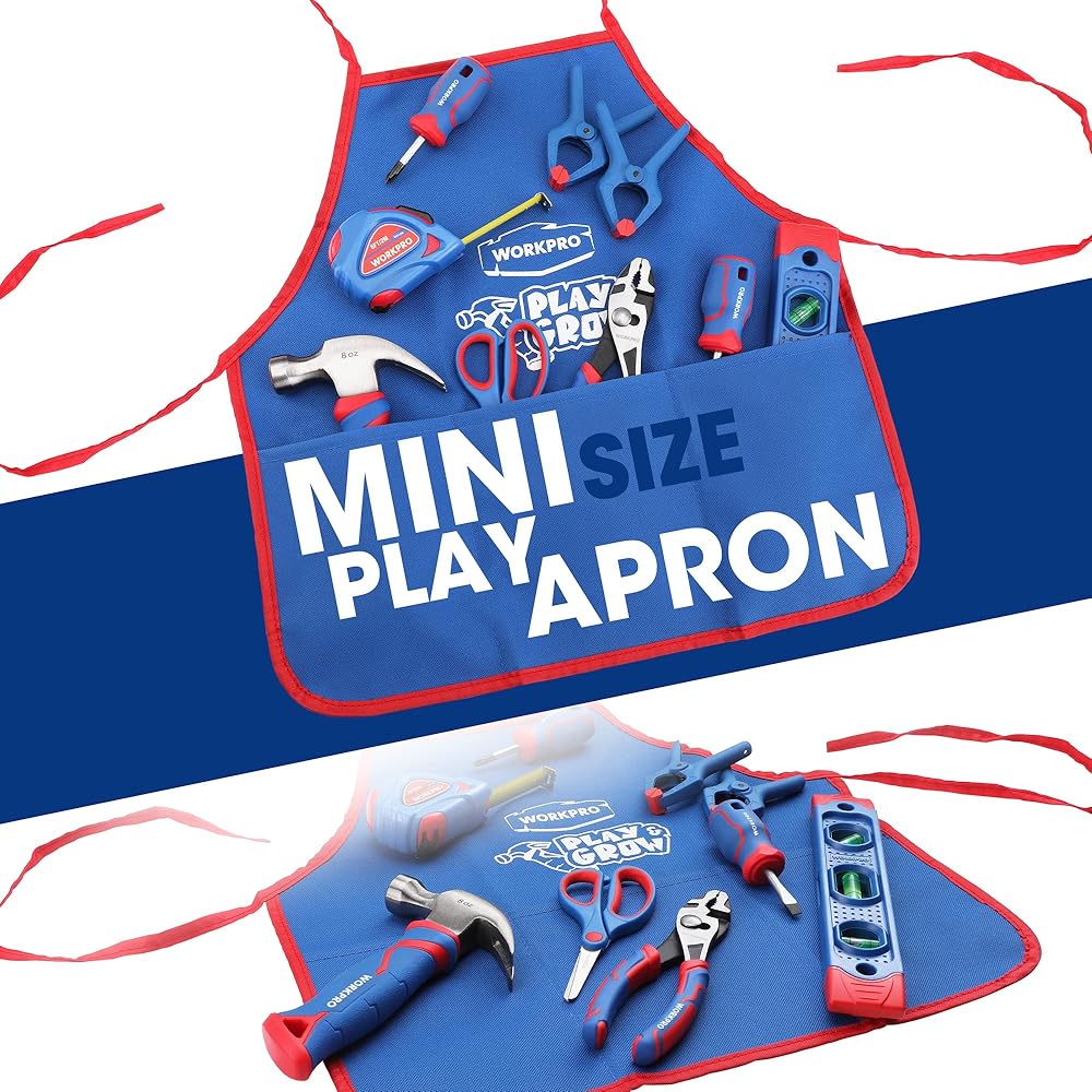 This real kids tool set is an excellent gift for boys and girls who love to build and learn. It includes practical hand tools and a children's size apron to protect their clothes from dust