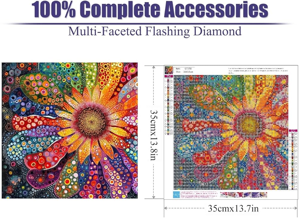 DIY Diamond Painting Kits for Adults-Flowers Diamond Art Kits for Adults Beginners, 5D Diamond Painting Flowers, Full Round Drill Diamond Art Gem Art and Crafts 14x14inch