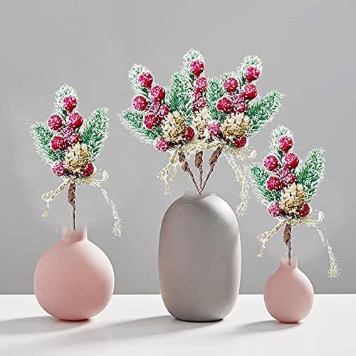 Christmas Picks White Christmas Berry Stems Floral Christmas Tree Picks White Berry Stems Artificial Pine Cones Berry Branches Wreath DIY Crafts Winter Holiday