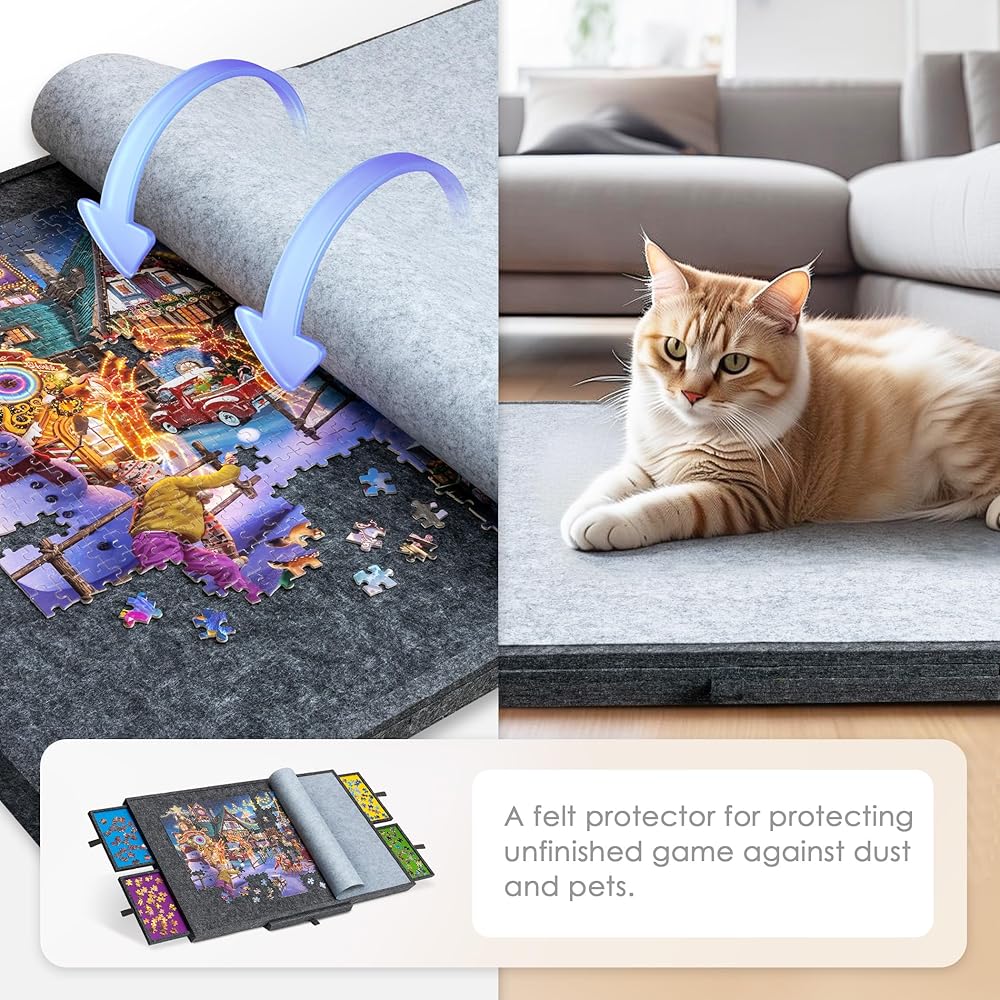 Felt Sheet Cover - Enclosed with a felt sheet protector to secure your unfinished puzzle game against dust and stop naughty pets from messing with it while you are taking a rest.
