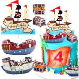 【Exquisite design】The pirate ship model and pirate chest model are made of resin, which is sturdy, waterproof and not easy to fade; This pirate themed cupcake topper is made of cardboard, which is odourless and can be used with confidence.