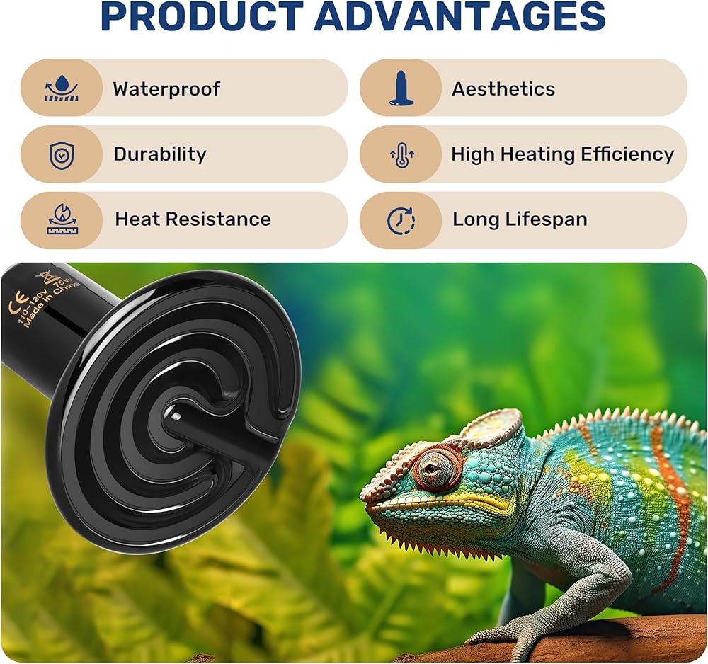 24 Hours Heat Sources: Can be used continuously day and night, safe using in porcelain socket, stable heat dissipation, energy-saving, and higher thermal efficiency than ordinary heating lamps