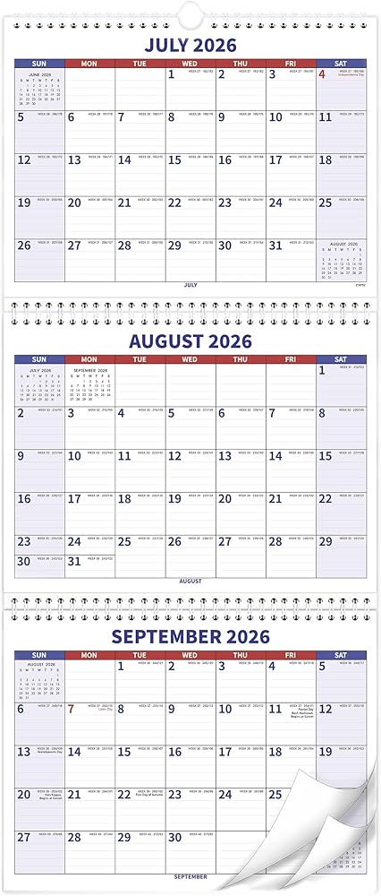 2026-2028 Wall Calendar – July 2026 - June 2028, 3 Month Wall Calendar 2026-2028, 2 Year Calendar, 3 Month Calendar Vertical Display (Folded in a Month), Move-a-Page, 11" x 25", Holidays