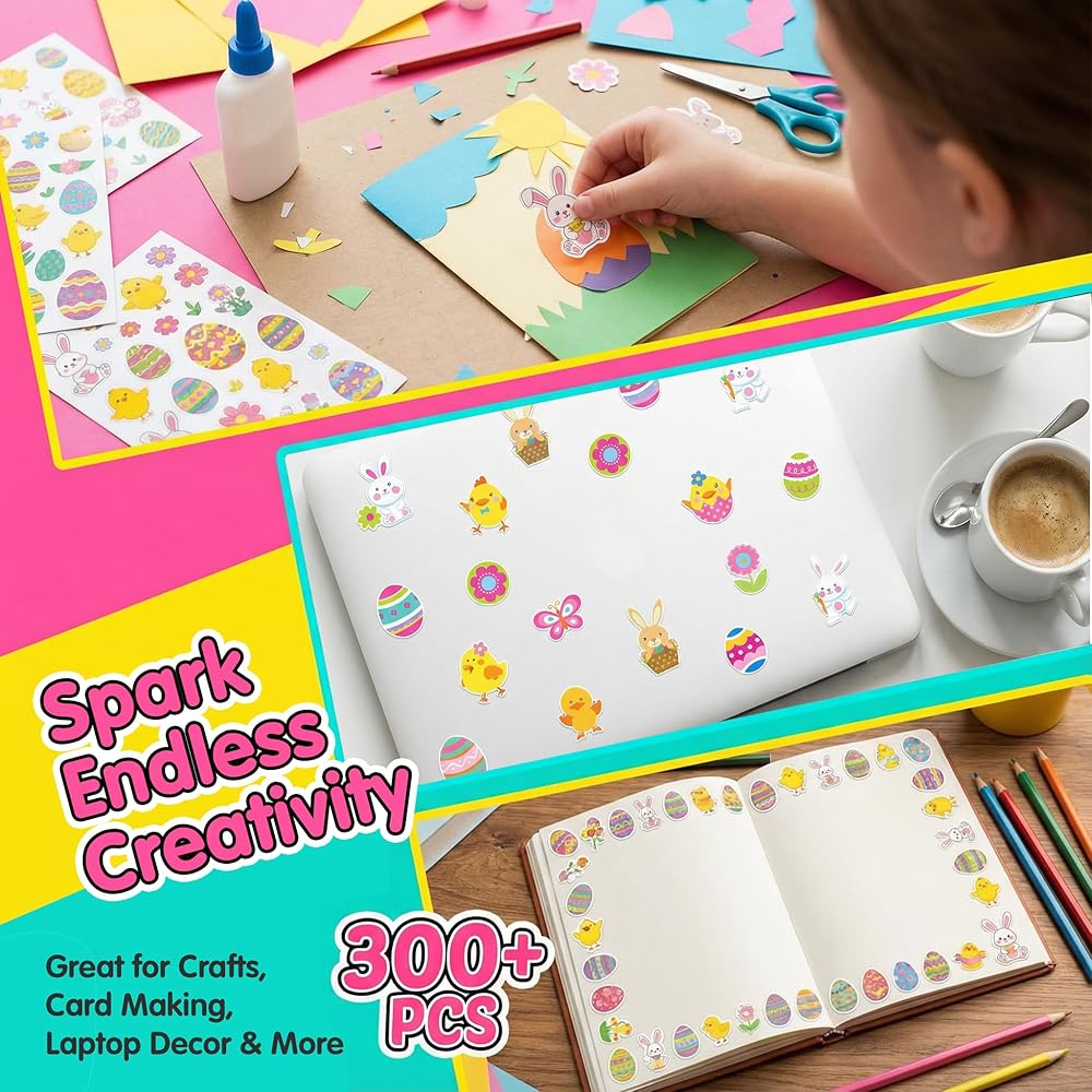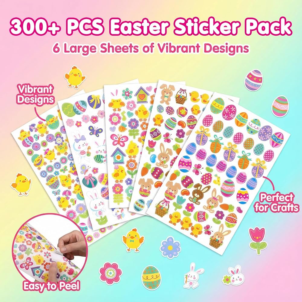 Package Includes: 6 sheets Easter stickers, approx. 300+pcs stickers in total; Color: as picture shown, bright and colorful.