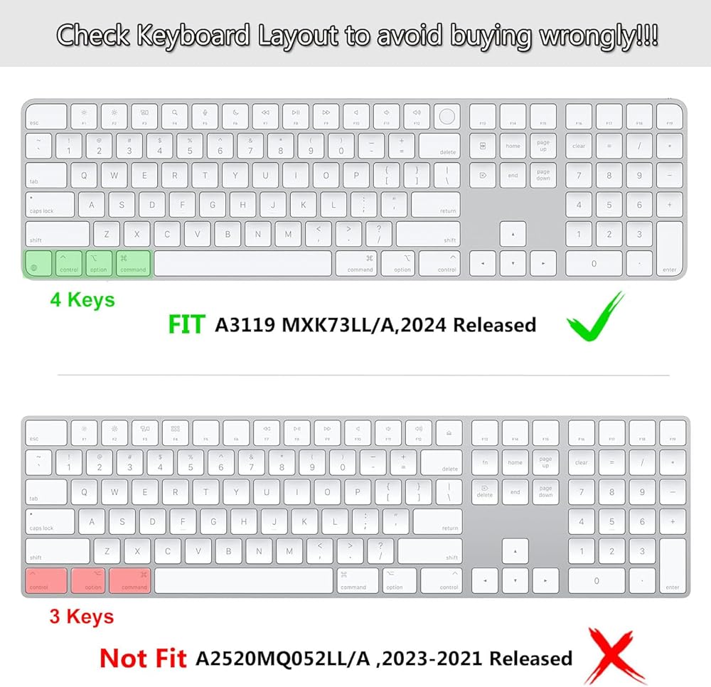 COMPATIBLE WITH: Please check your device model carefully to avoid a wrong purchase!!!Perfectly compatible with Newest 2021 iMac 24 Inch A2449 Magic Keyboard with Touch ID.