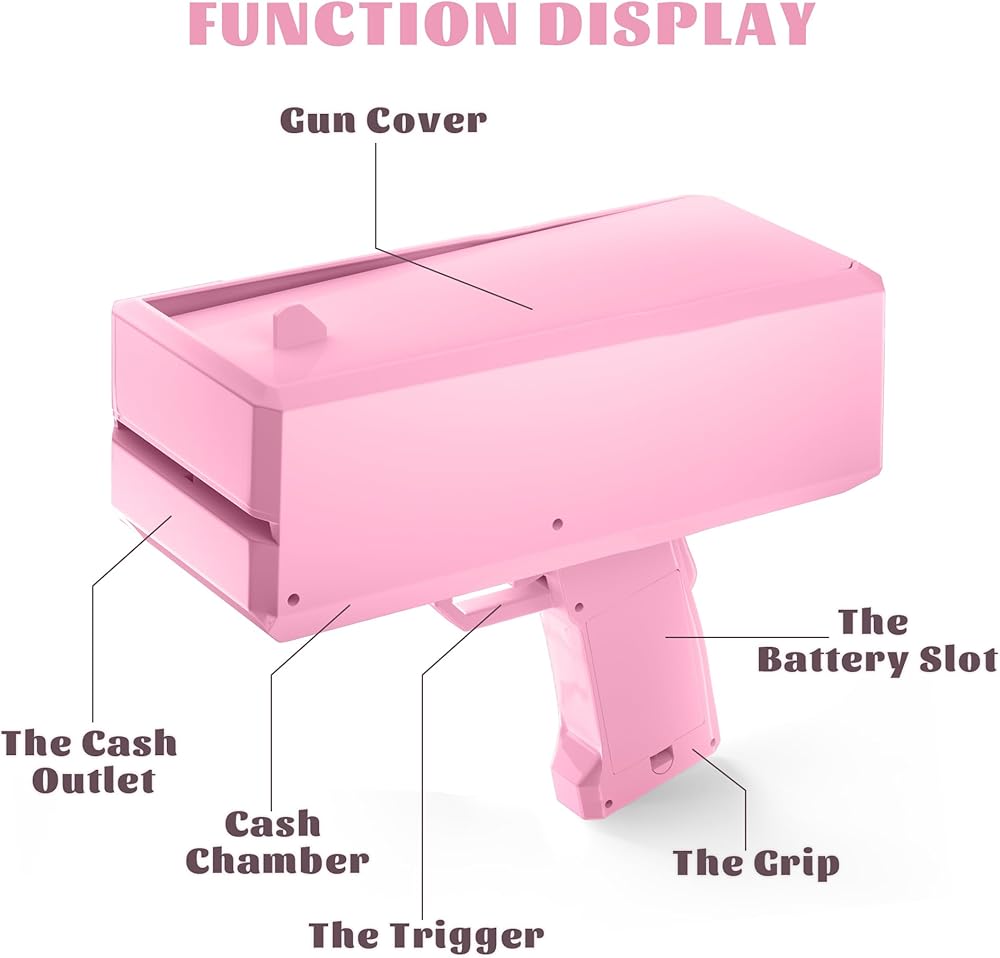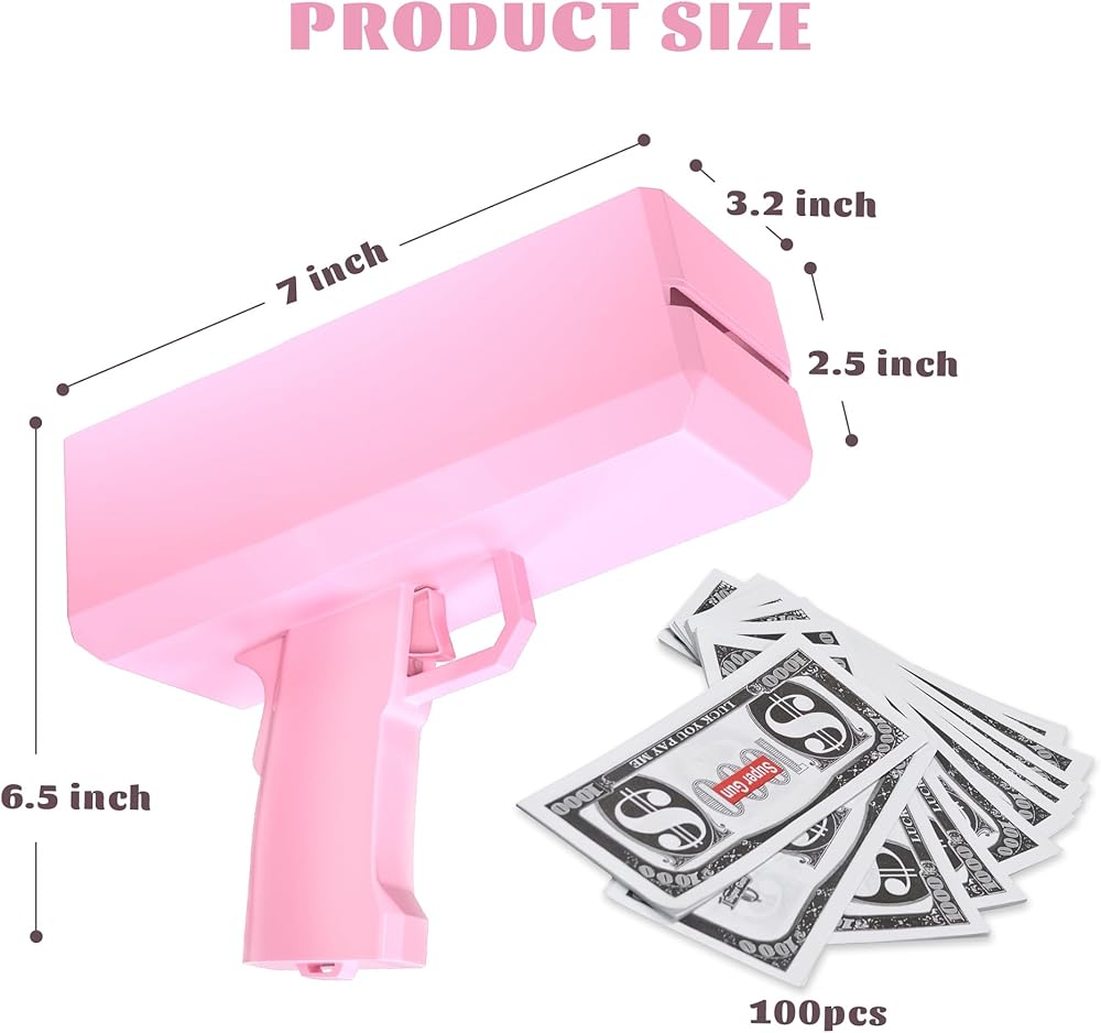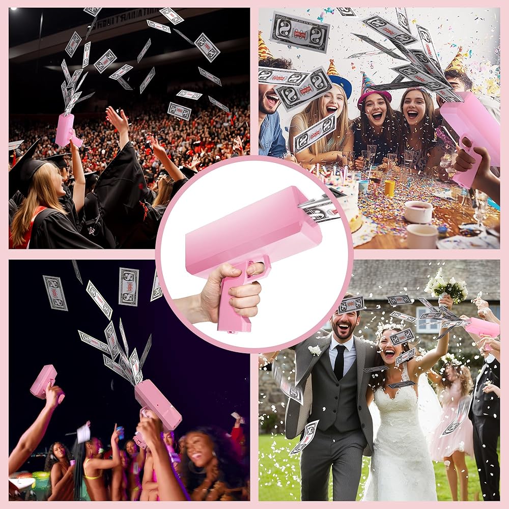 Ideal Gift - This money gun shooter is a very fun toy for games, weddings, Halloween, Christmas, team building, family gatherings, bachelor parties, 360 photos, vedios, movies. A perfect gift for friends, family, boyfriends, girlfriends and kids.