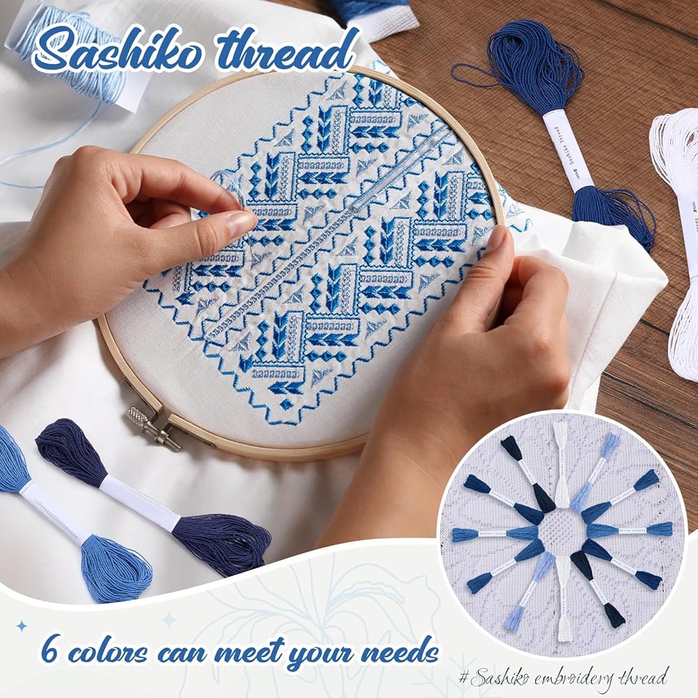 The Sashiko embroidery kit is composed of 100% cotton, providing a soft yet sturdy strand ideal for various stitching projects. The quality material ensures your creations not only look exquisite but also stand the test of time, heightening the value of your craftwork.