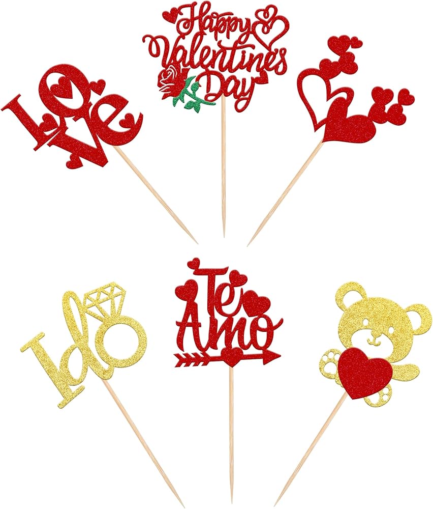 Valentine's Day Love Heart Theme Party Cupcake Decorations Supplies