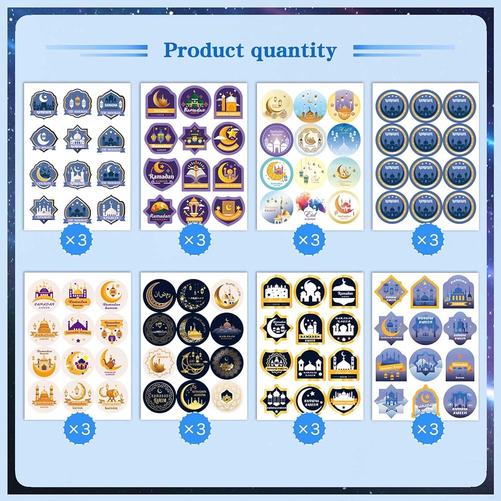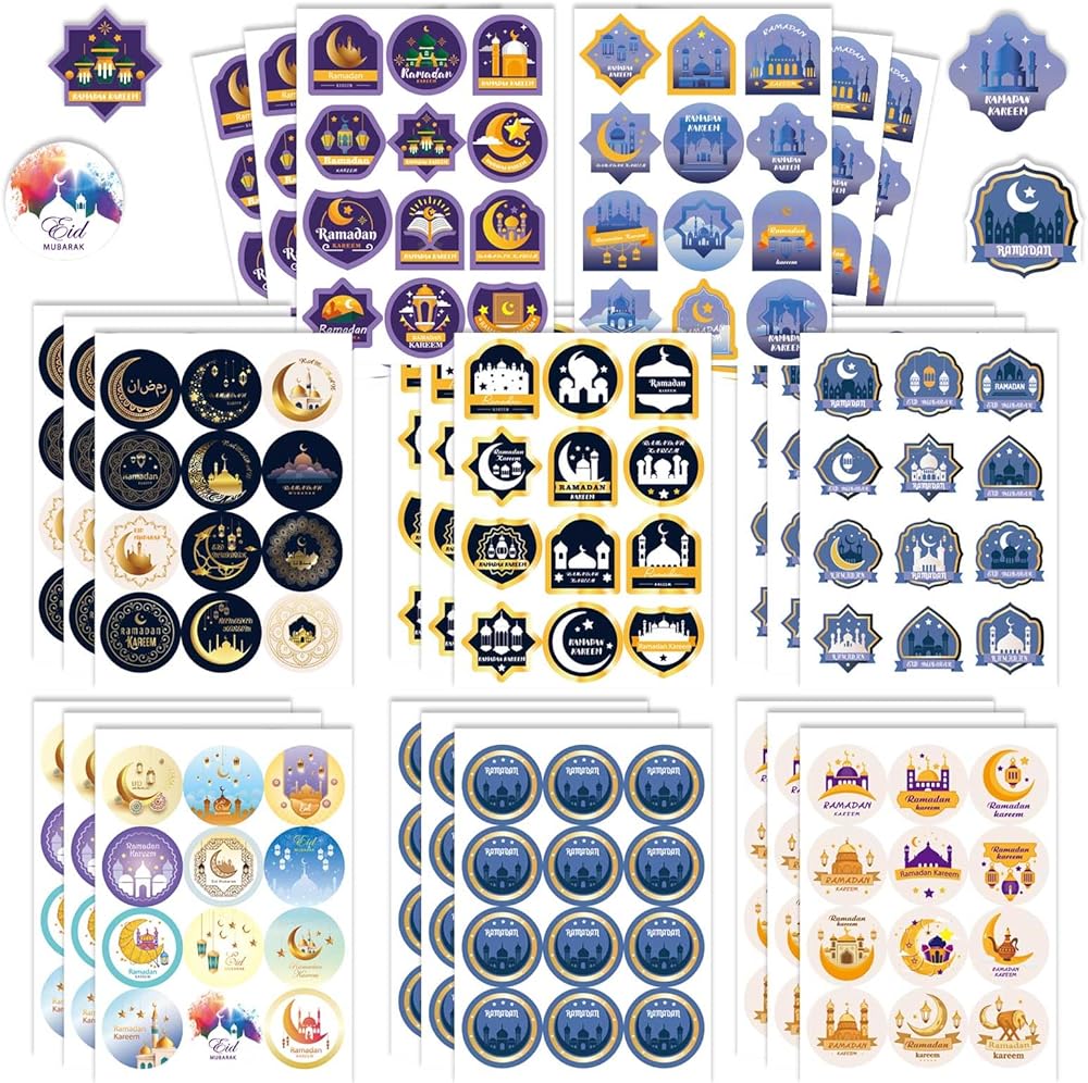 🌙【Eid Al Adha Sticker Package Included】 This package comes with 288 pieces Ramadan stickers and Eid Stickers, 12 different designs, abundant quantity to meet with your various decorative needs.Round stickers are designed with solemn Islamic elements, including star, crescent, khatim, mosque and greeting texts.