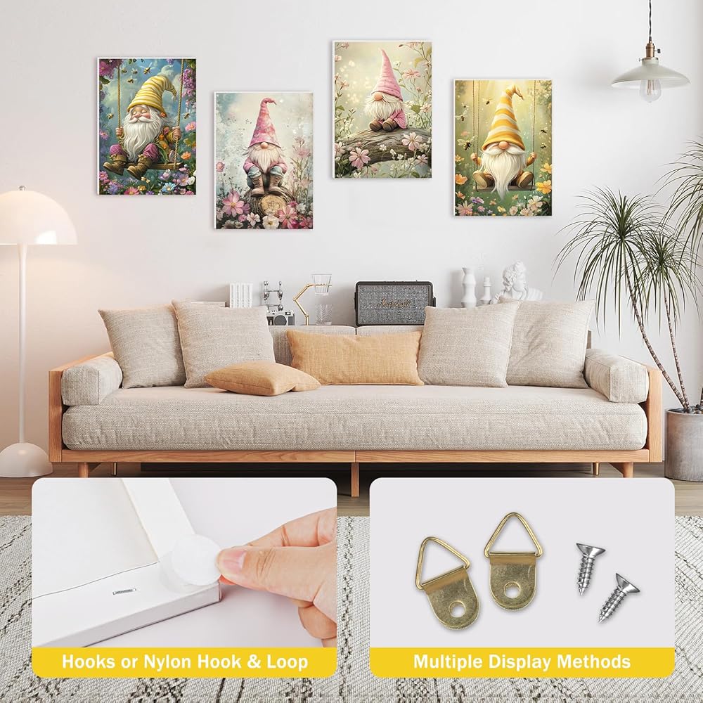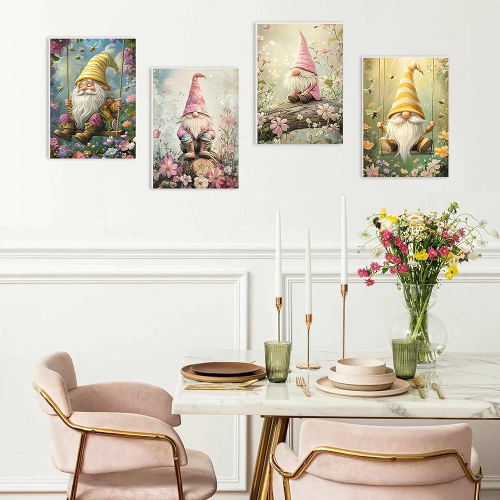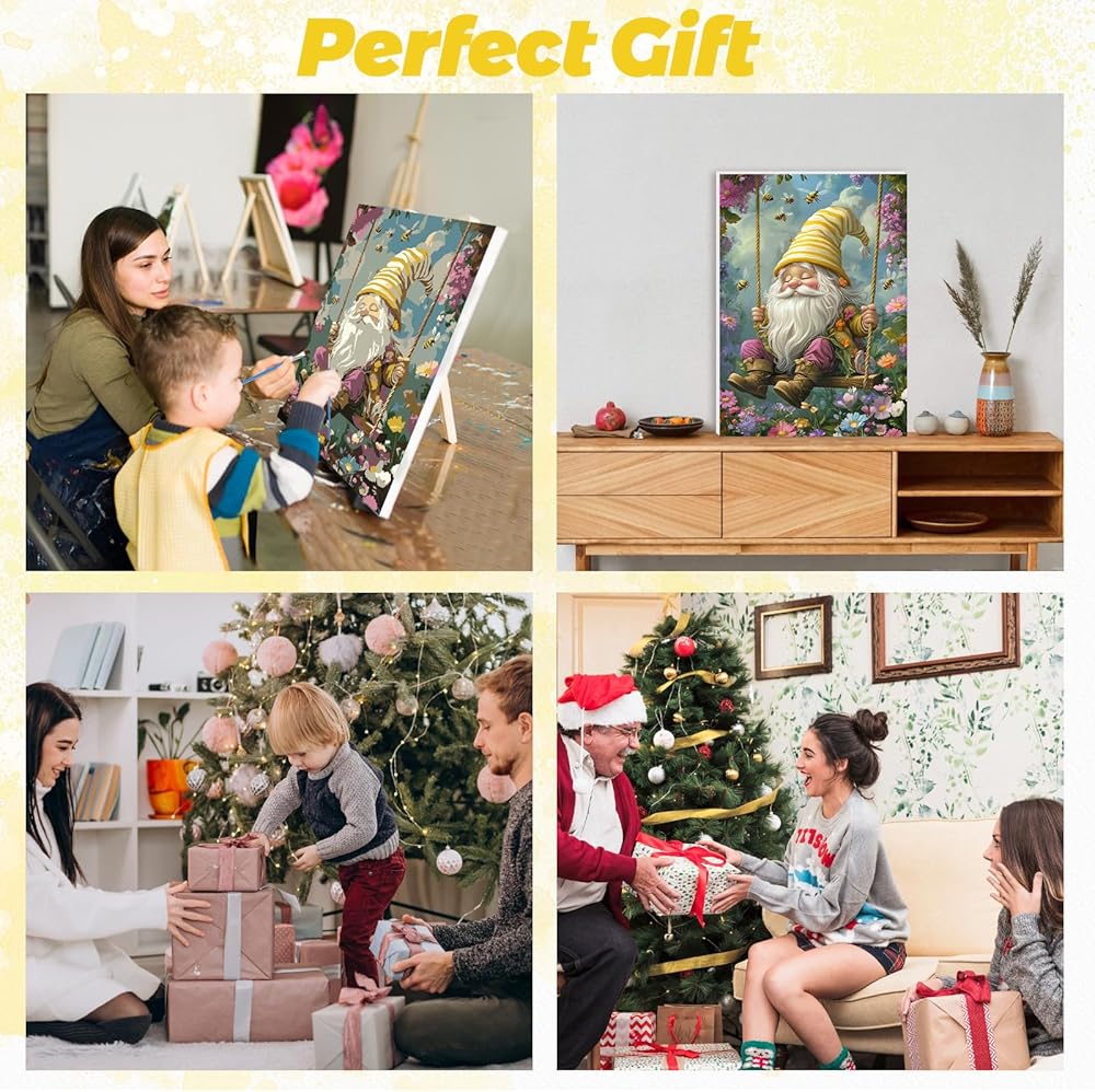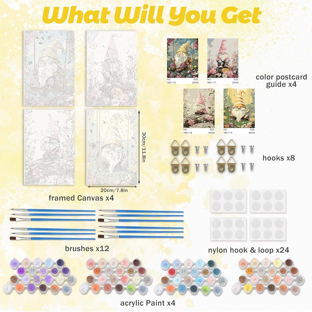 RICUVED Paint by Number for Adults Framed Canvas, 4 Pack Paint by Number Kits Gnome Arts and Crafts for Adults Beginner, Easy DIY Flowers Acrylic Oil Painting Number Kits for Home Wall Decor(8X12inch)