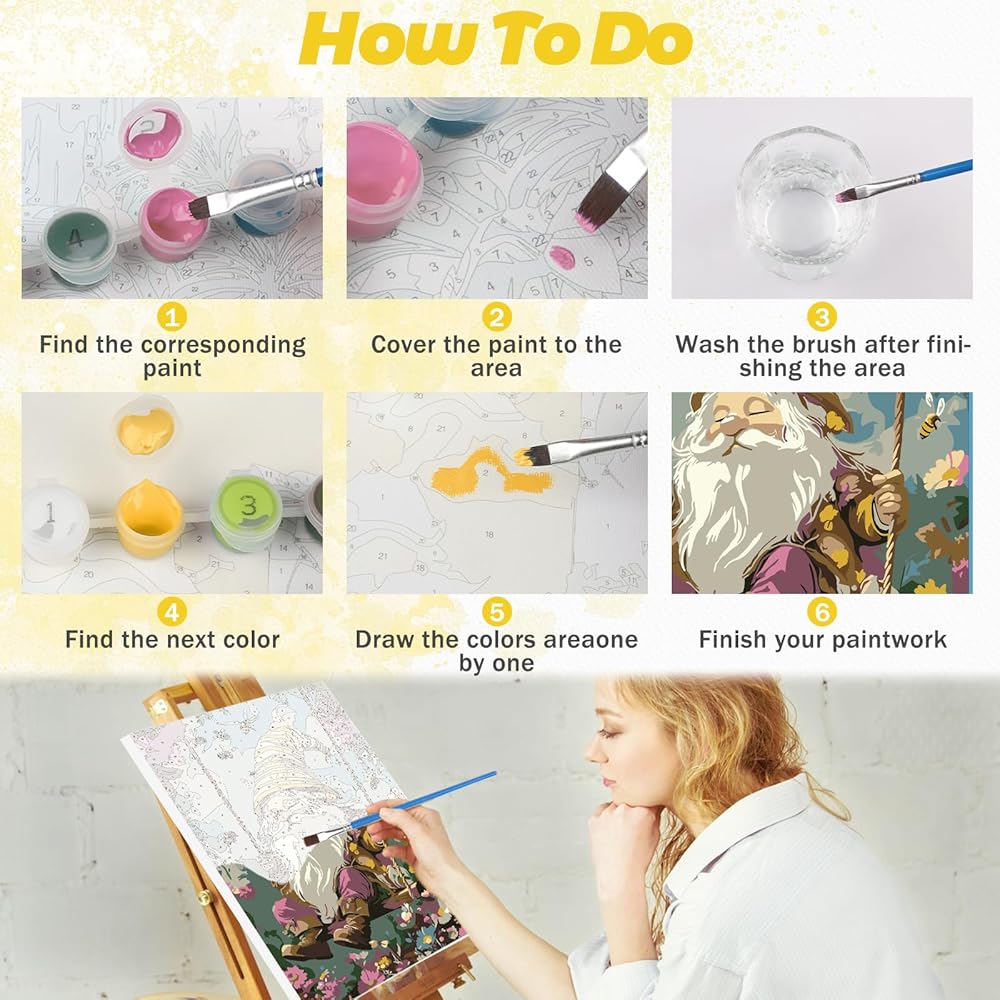ARTS AND CRAFTS: Paint by numbers with framed makes it easy to display, hanging on the wall or leaning on the table as a decorative painting in the living room, bedroom, dining room, study room and other places. Perfect gift for birthday, wedding, party, Christmas, etc.