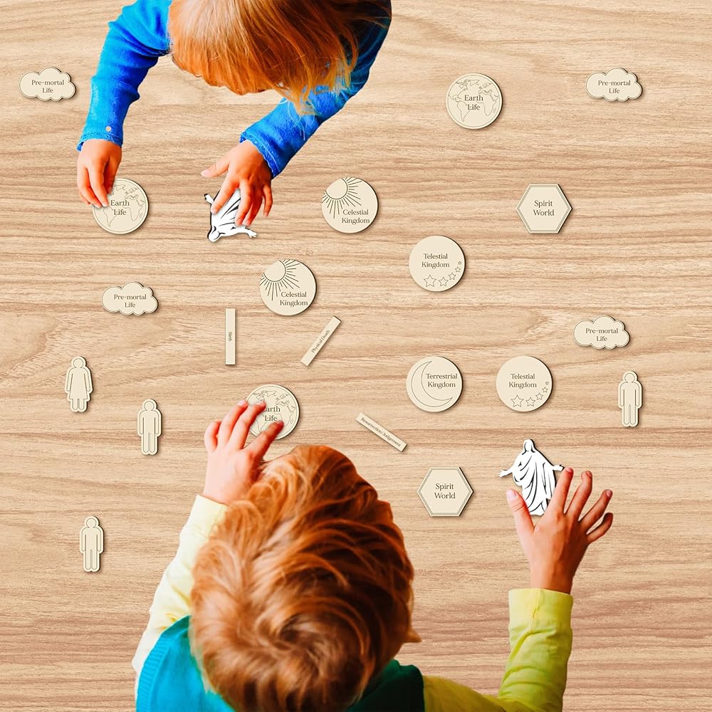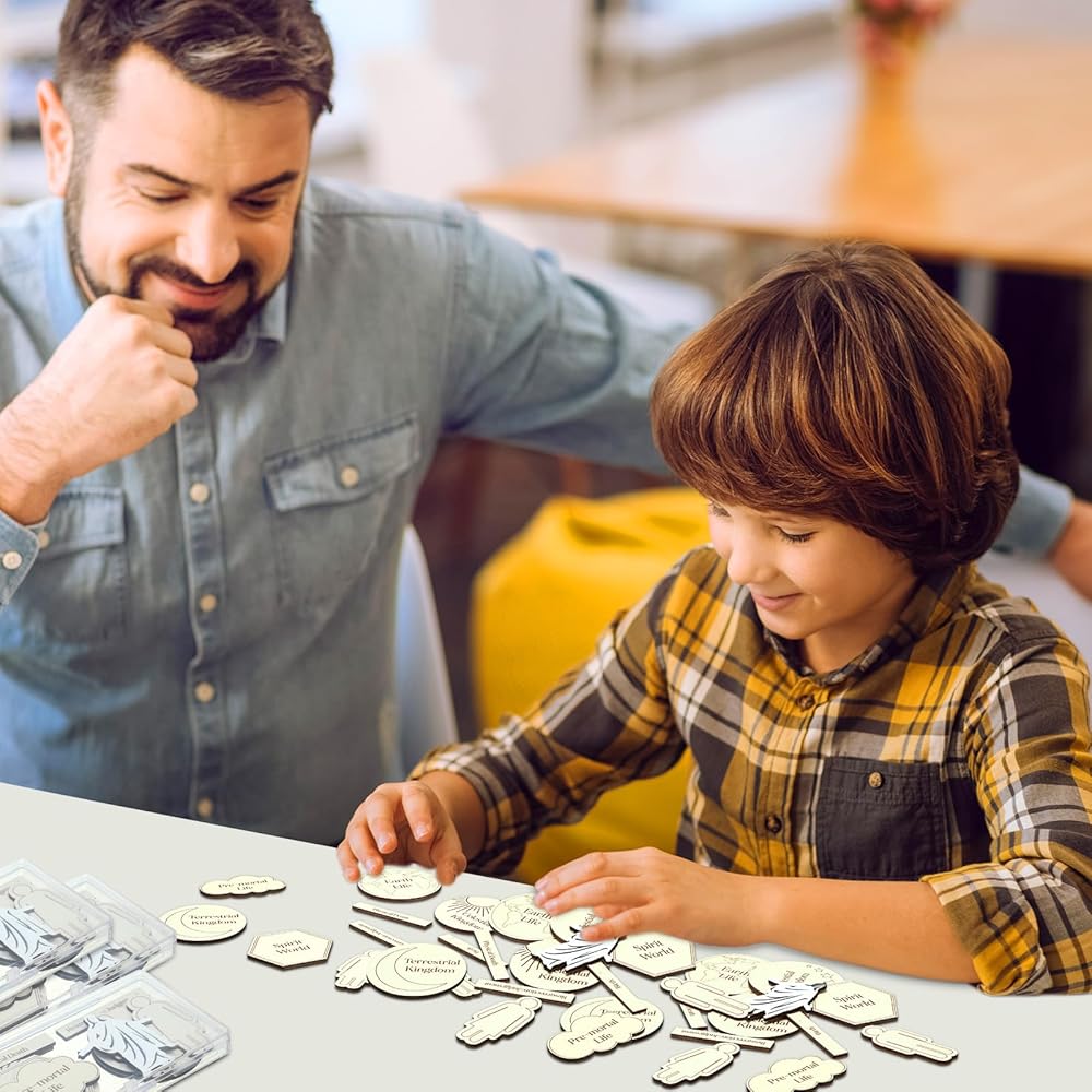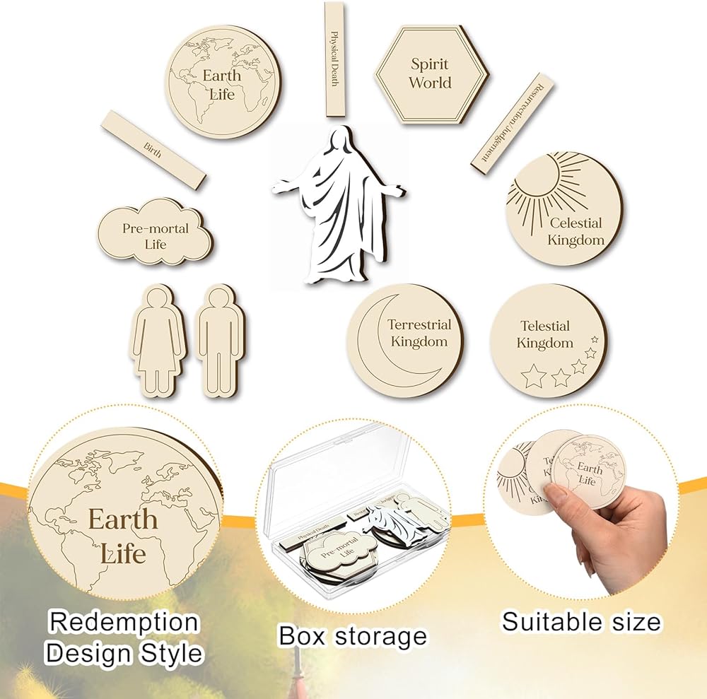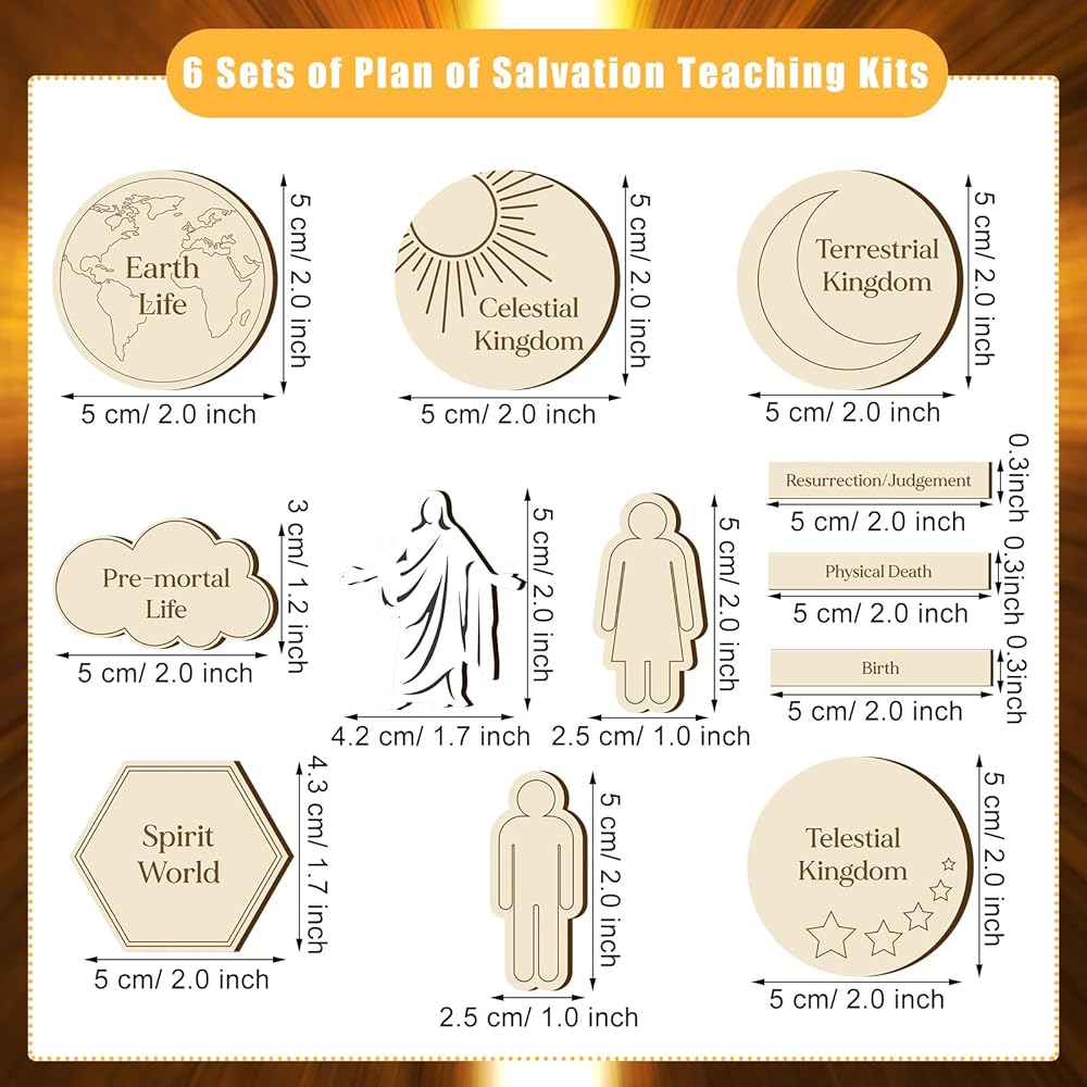 Comprehensive Package: every order comes with 6 sets of our plan of salvation teaching kits for each order; Each set includes 12 exquisite wooden pieces, each representing a different component of the salvation teaching plan, which can easily and accurately explain the salvation plan