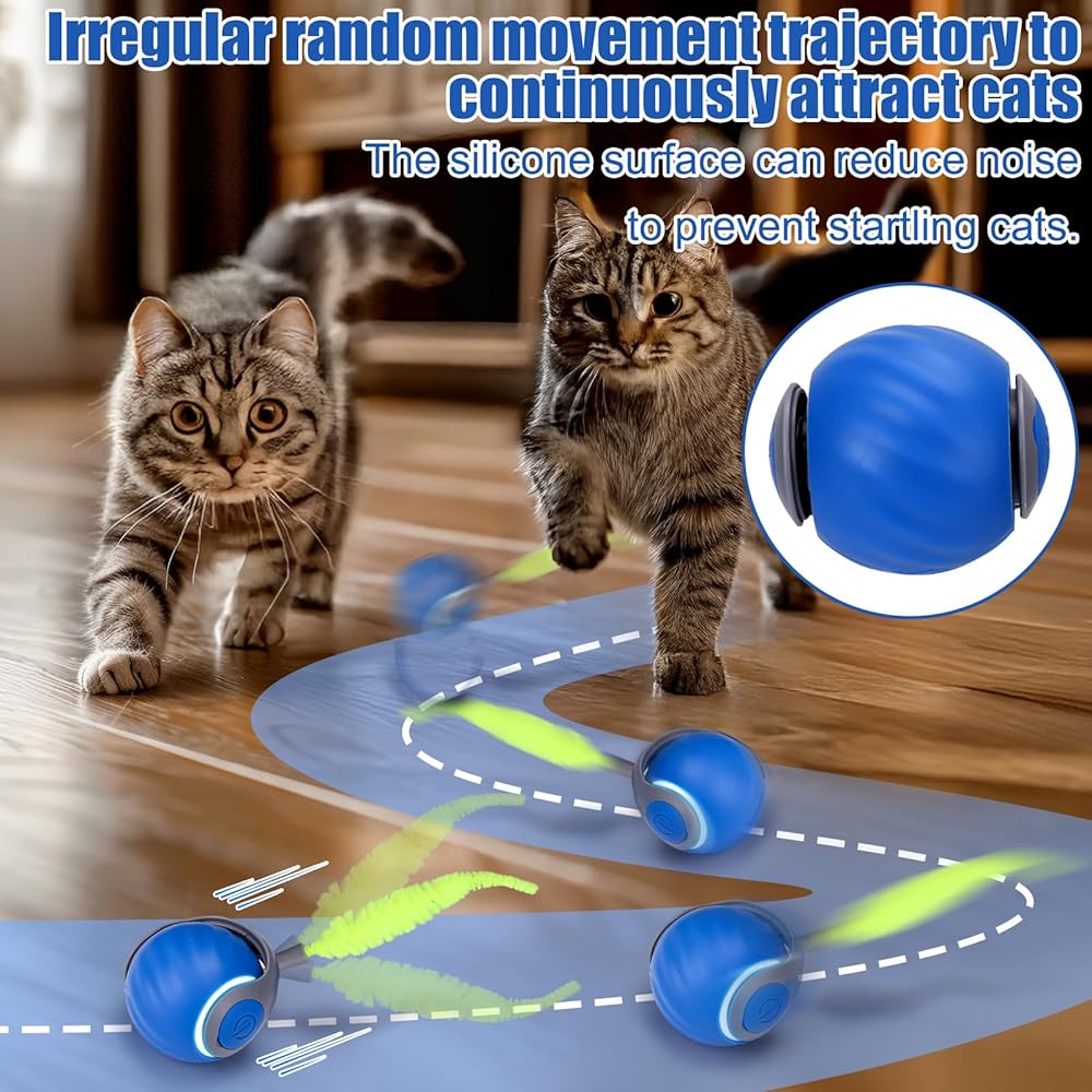 Two-Speed Adjustment: Whether it's a slow-moving cat or an energetic one, this interactive cat ball toy can meet the exercise needs of different cats with two-speed adjustment. It also adapts to different surfaces, ensuring stable operation whether on long-pile carpets or grass